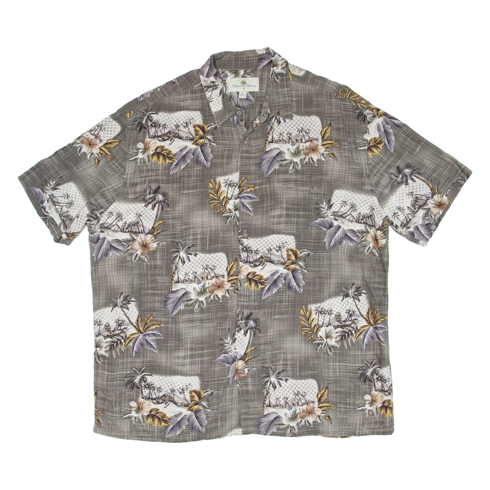 ISLAND SHORES Mens Hawaiian Shirt Grey Floral XL