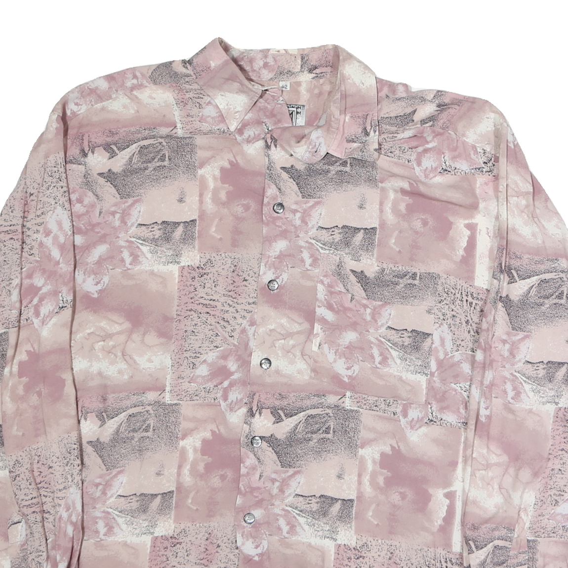 JEAN MASERIC Mens Pink & Grey Patterned Long Sleeve Shirt L Polyester Casual