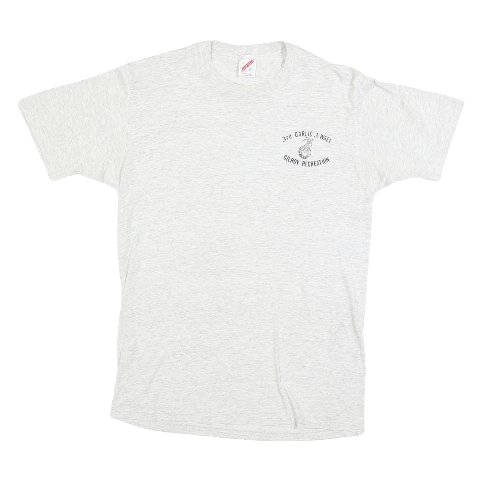 JERZEES Mens White 3rd Garlic 3 Wall Gilroy Recreation Graphic T-Shirt L Short