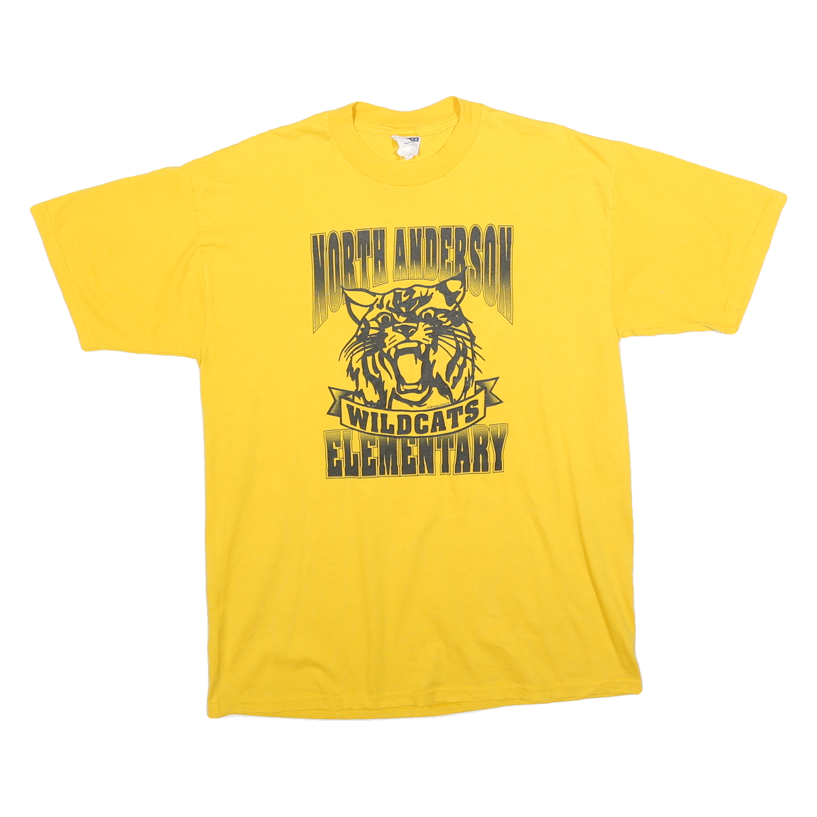 JERZEES Mens Yellow North Anderson Wildcats Elementary Graphic T-Shirt L Short