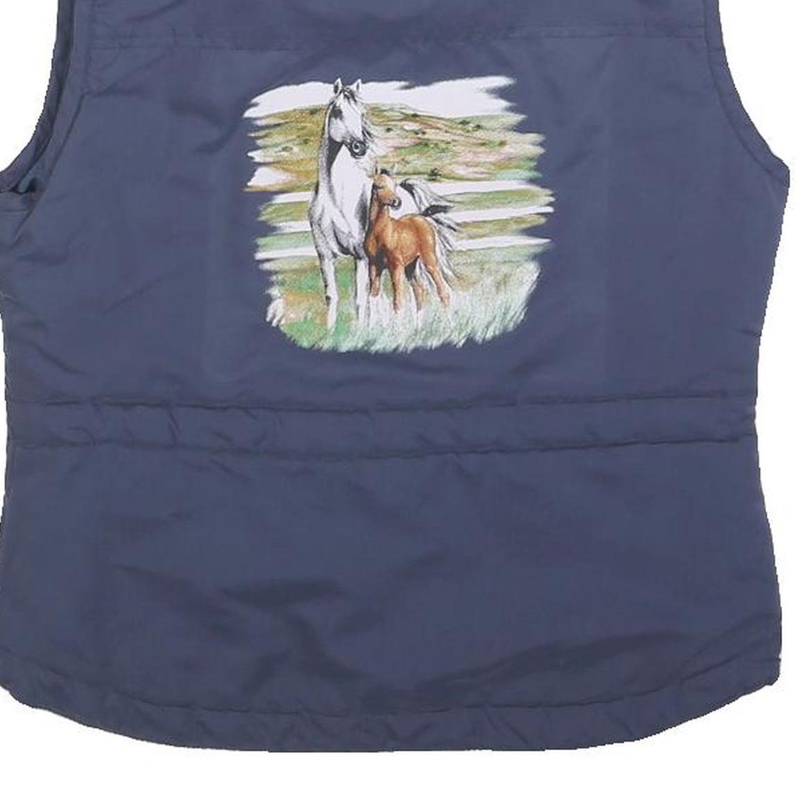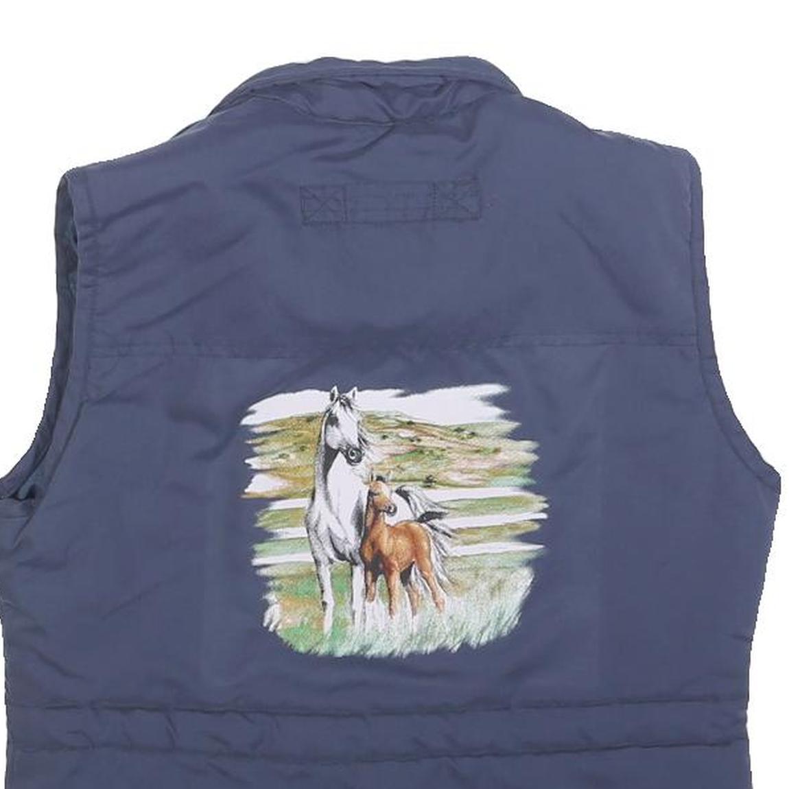 JFF Womens Blue Sleeveless Zip Jacket Polyester Horse Print S