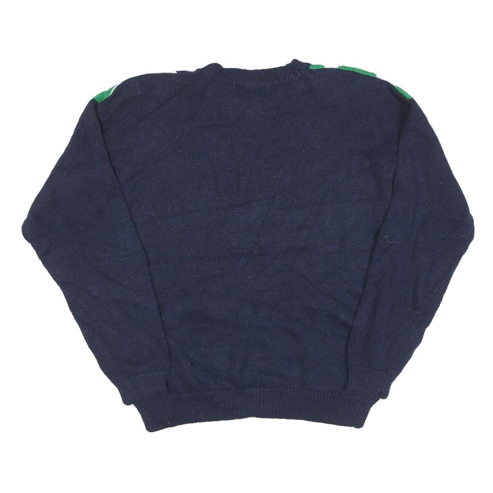 JOAN LESLIE Womens Navy Blue Green White Patterned Cotton Blend Jumper Crew Neck