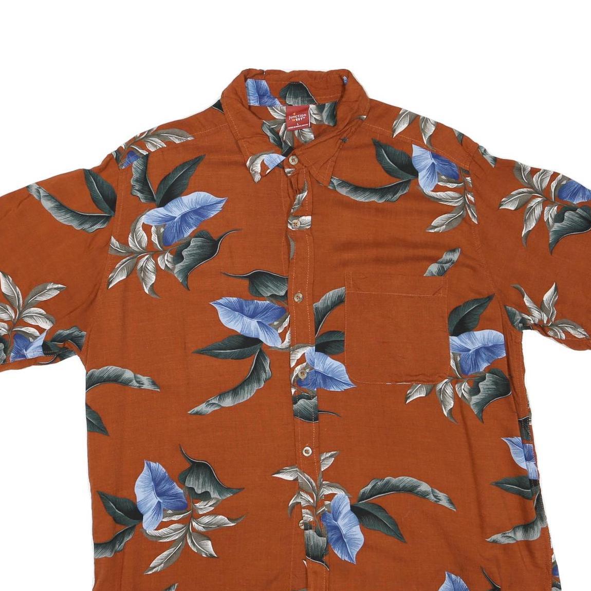 JUNCTION WEST Mens Orange & Blue Floral Cotton Blend Shirt L Casual Summer