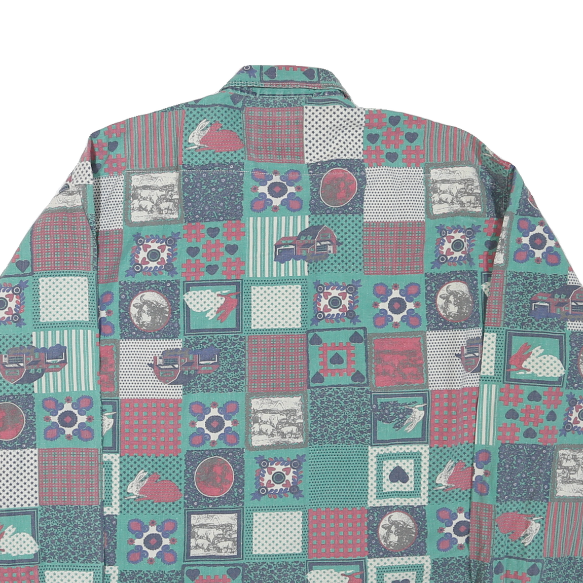 Constructed from a comfortable cotton blend, the shirt provides a soft feel and a regular fit. It has long sleeves with buttoned cuffs for adjustability and style. The varied squares and graphic details give this shirt a unique, eye-catching appearance perfect for casual or creative wear.