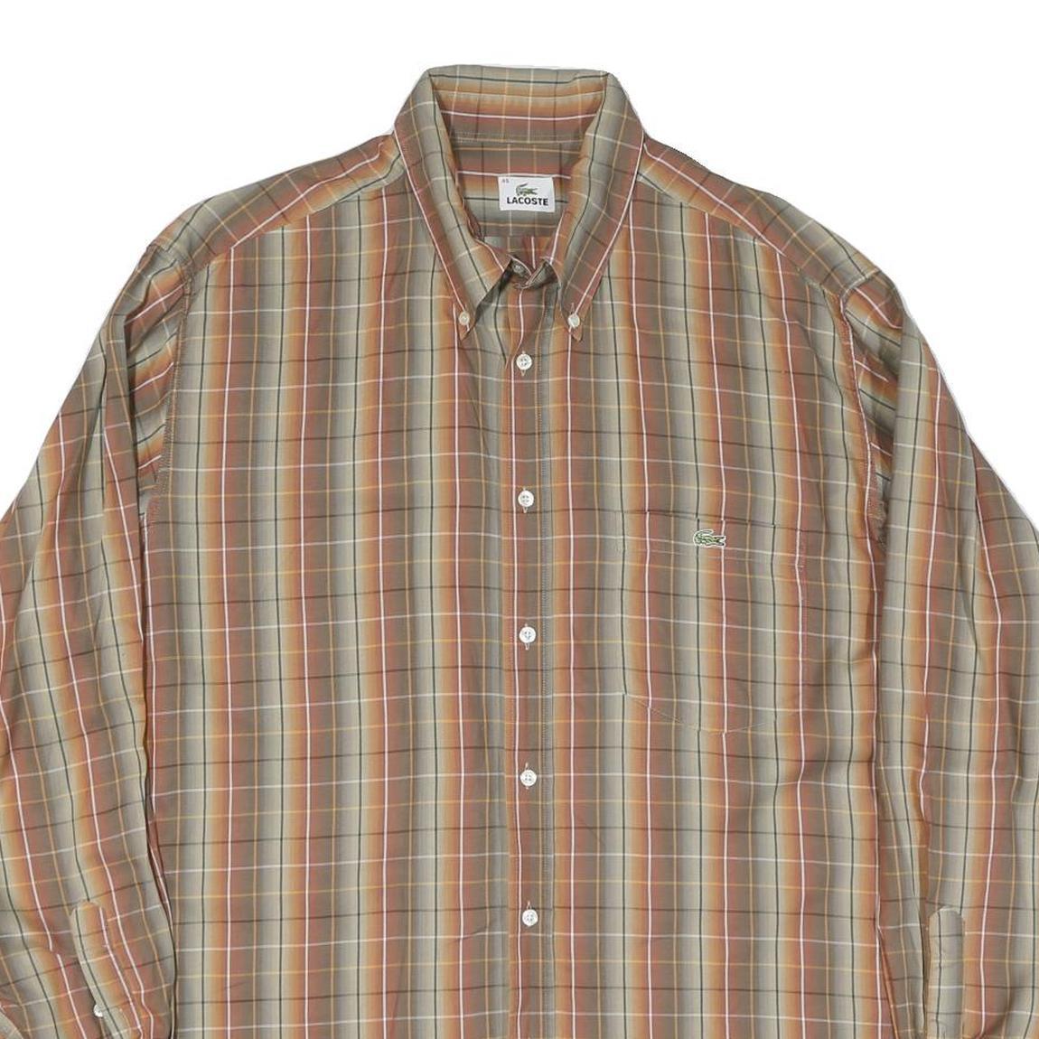 LACOSTE Mens Beige & Orange Check Shirt 2XL Cotton Blend Casual Wear
