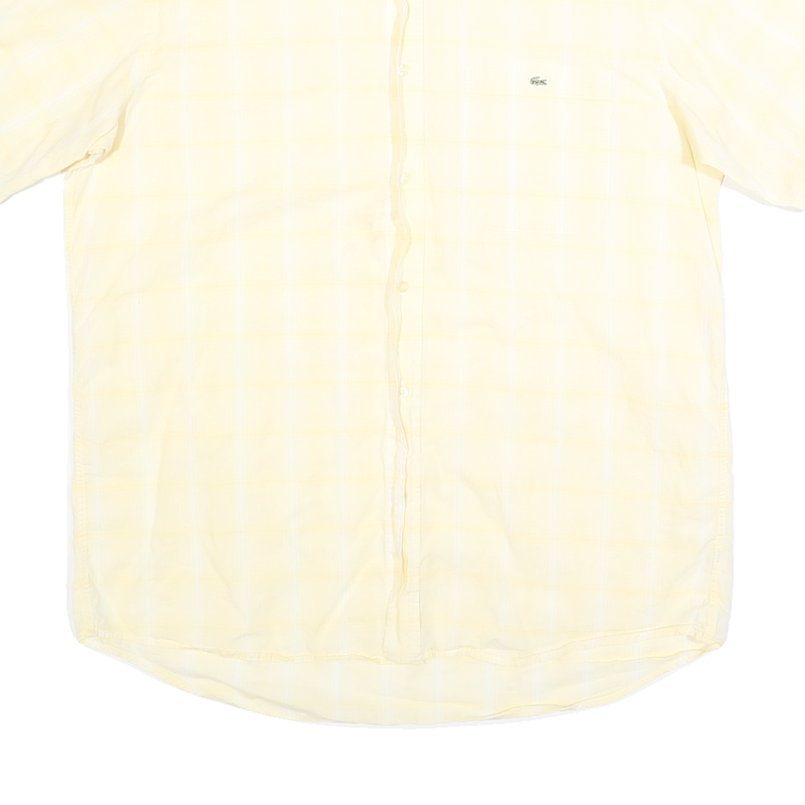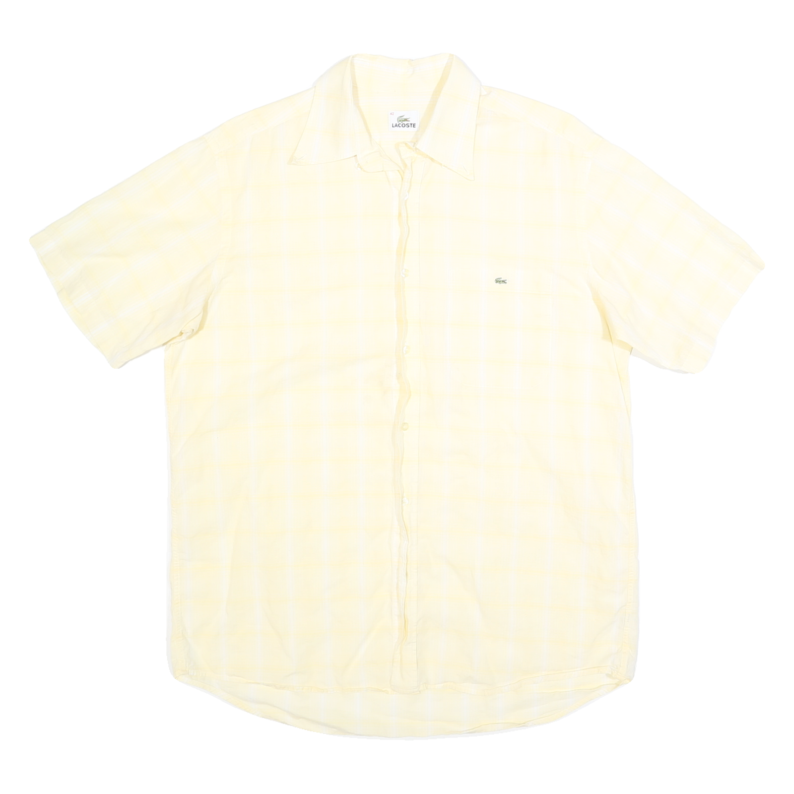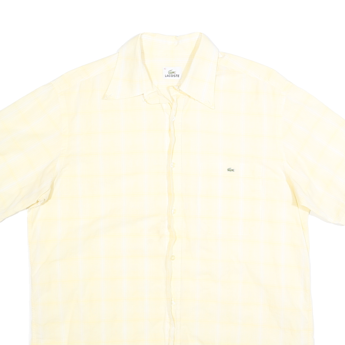 LACOSTE Mens Yellow Check Shirt L Cotton Short Sleeve Casual Summer Style