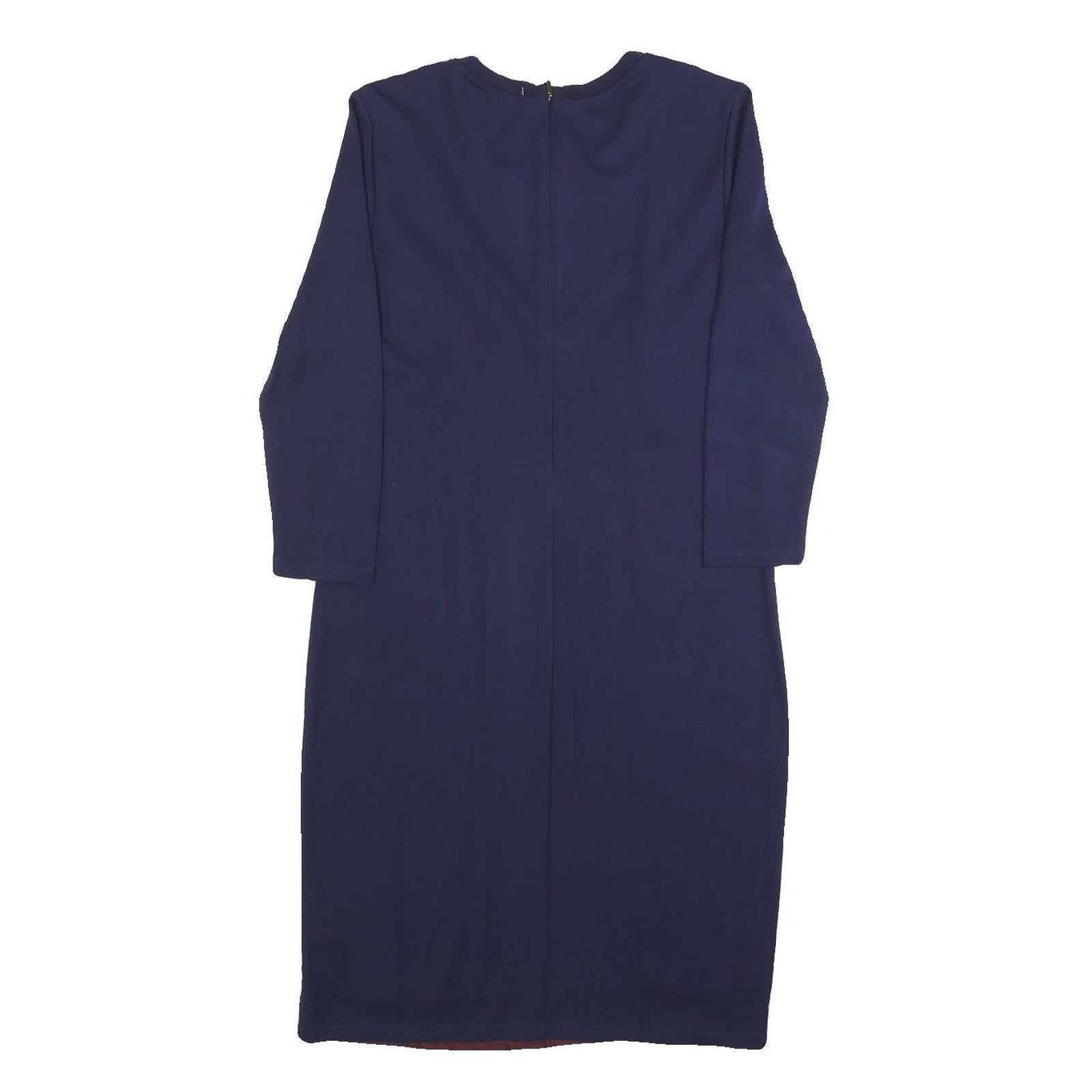 This Lauren Ralph Lauren dress features a striking blue and maroon colour combination with a flowing rope pattern on the front panel, complemented by solid blue sleeves and back. The round neckline and three-quarter length sleeves add a classic touch to the modern design.