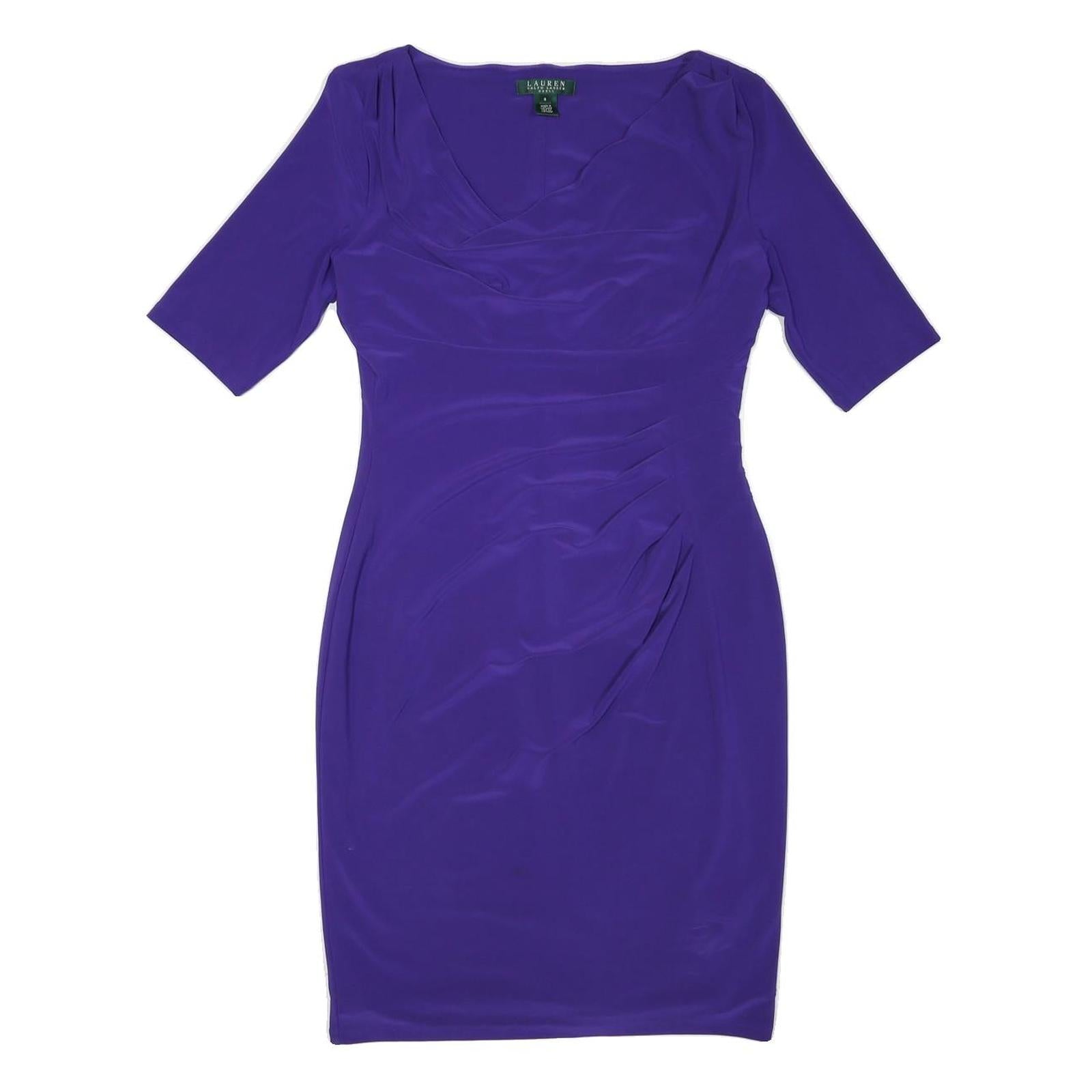 LAUREN RALPH LAUREN Womens Purple Day Polyester Blend Sheath Dress UK 8 Elegant