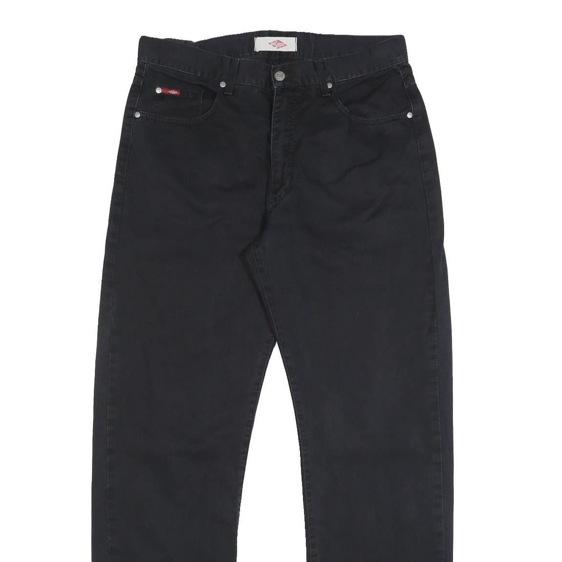 The design includes a traditional five-pocket style with rivet detailing and a visible branded patch on the back waistband adding subtle branding. They fasten with a zip closure for ease of wear and have straight legs that complement many casual outfits.