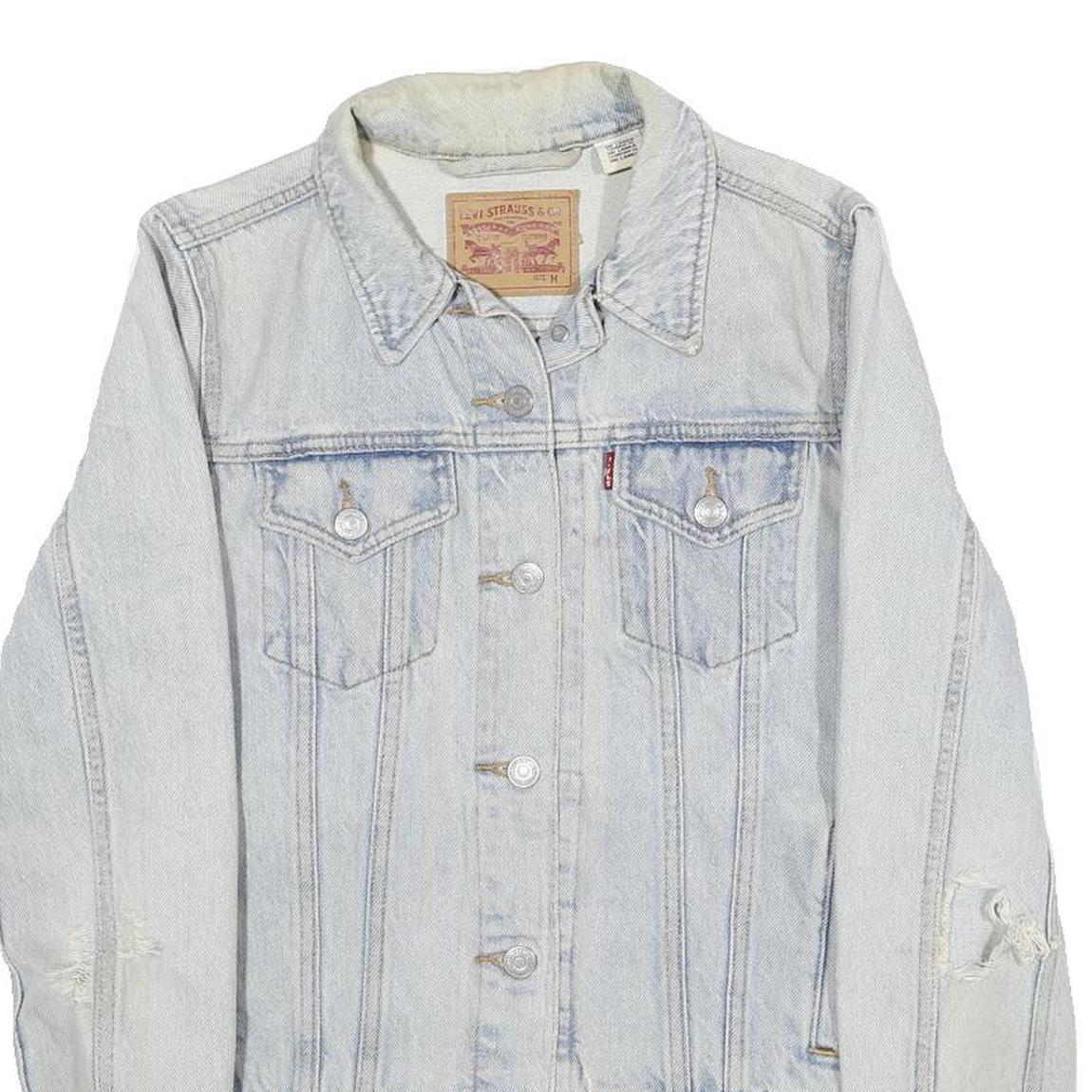 LEVI'S Womens Blue Cotton Denim Jacket M Button Plain Classic Distressed