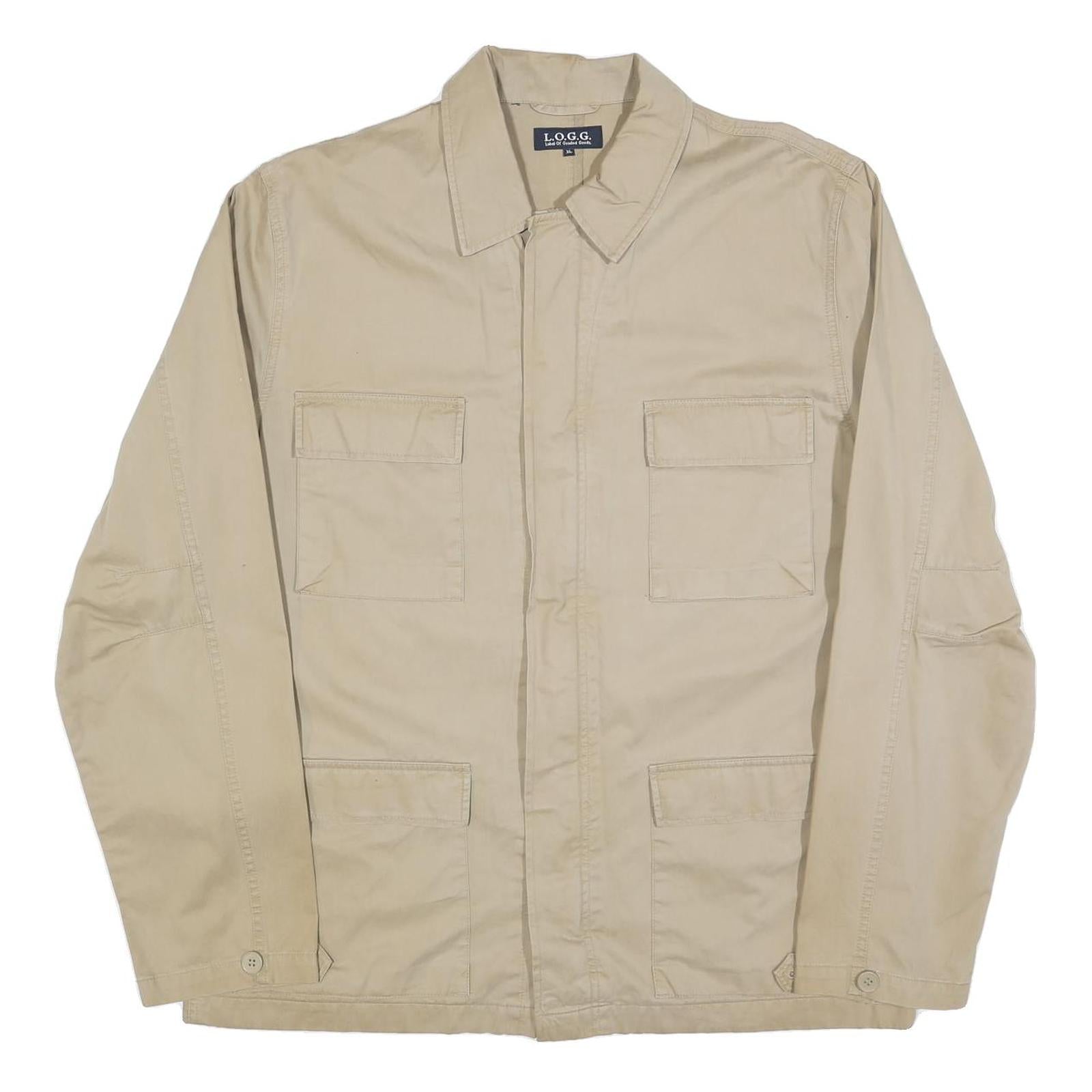 LOGG Mens Beige Cotton Blend Button Jacket XL Plain Lightweight Casual
