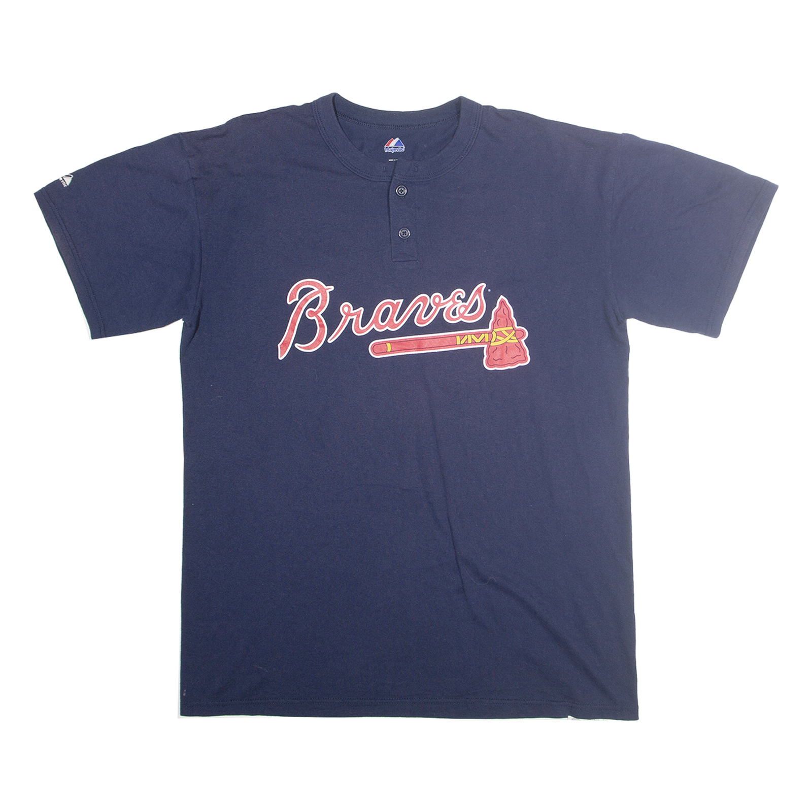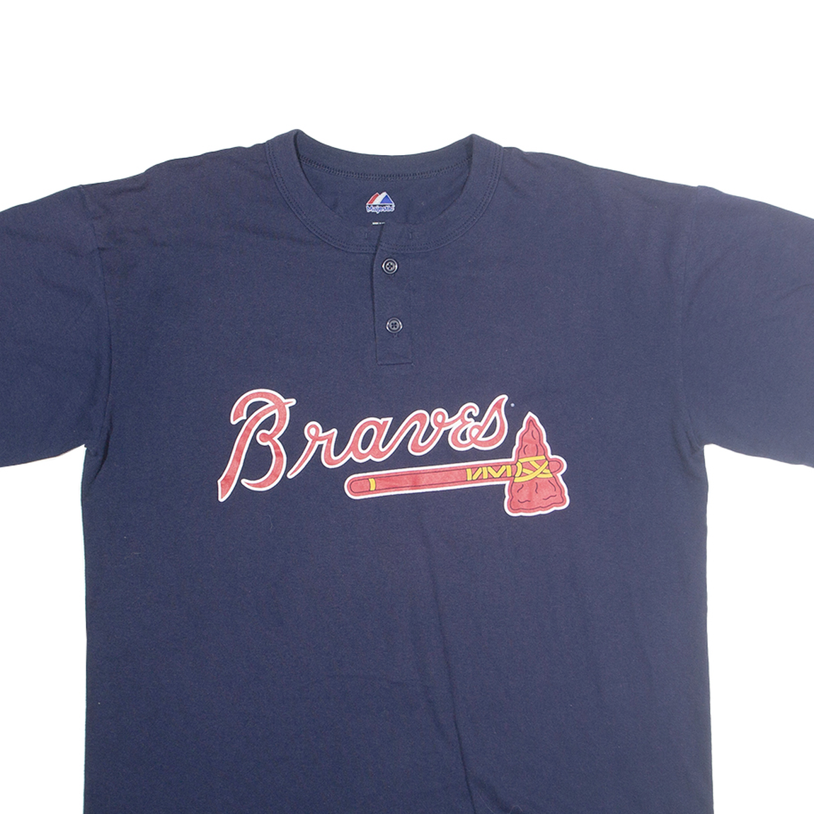 MAJESTIC Mens Navy Braves Graphic T-Shirt L Short Sleeve Crew Neck Sports