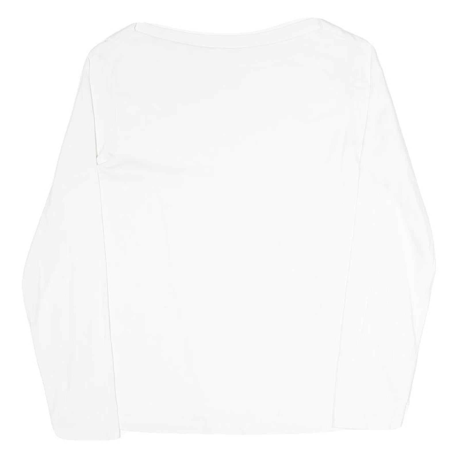 MANGO Womens White Plain Long Sleeve Crew Neck T-Shirt XL Cotton Blend