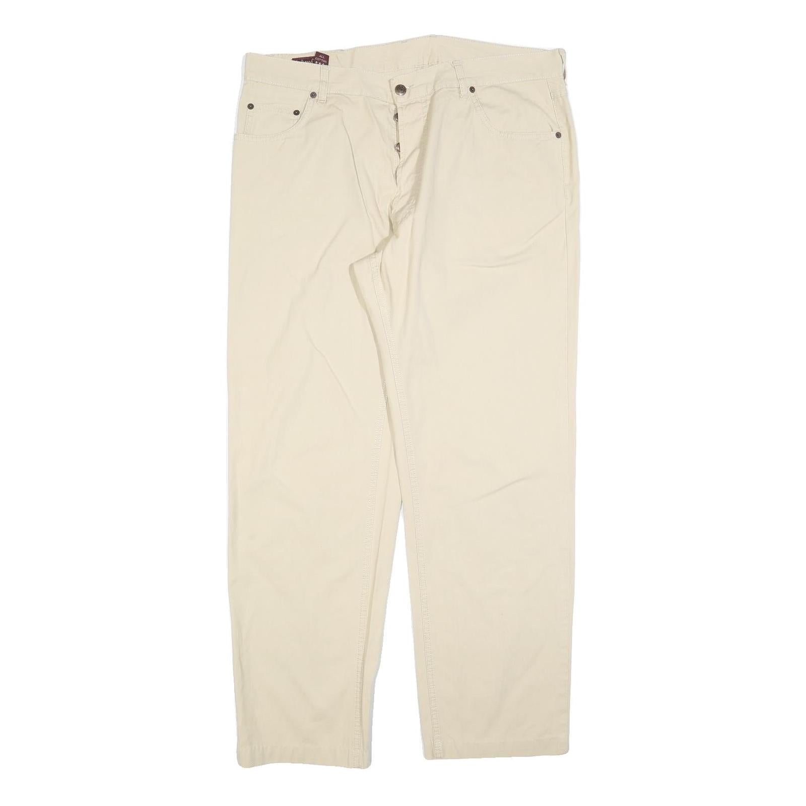 MARLBORO Mens Regular Beige Cotton Blend Trousers W38 L30 Button Closure Classic