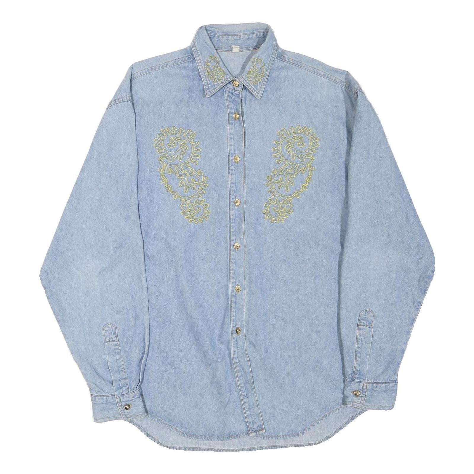 With no visible brand markings, this versatile shirt integrates classic denim style with distinctive embroidered embellishments, making it an excellent choice for casual outfits or layering in transitional seasons.