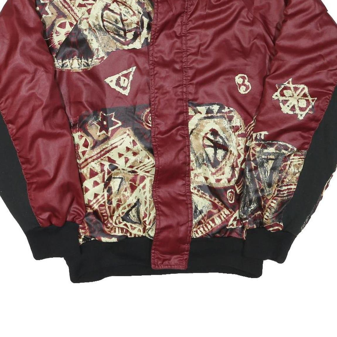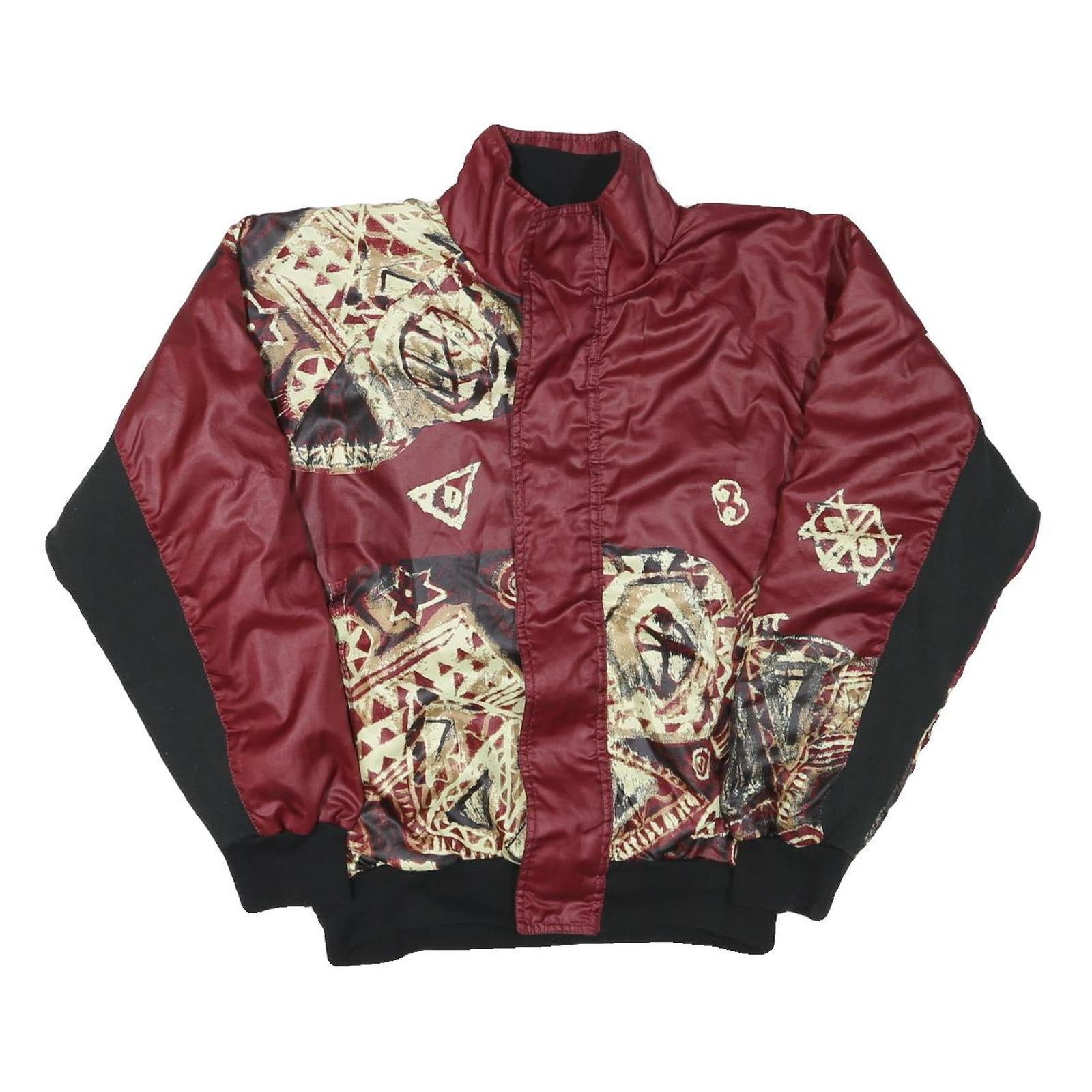 Mens Burgundy & Black Abstract Pattern Zip Jacket L Polyester Blend Casual Cool