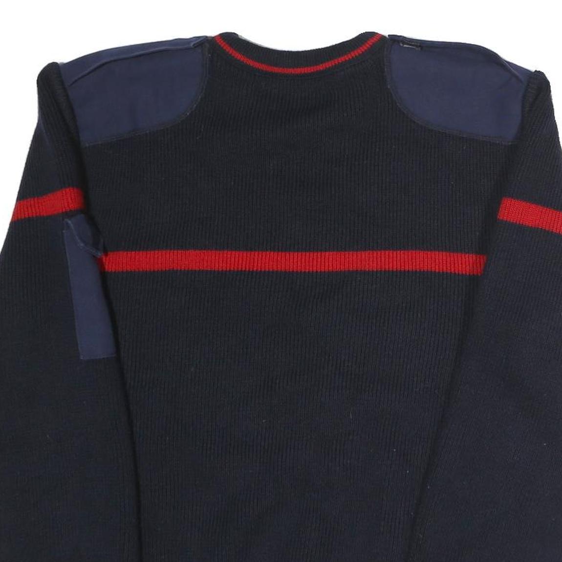 Mens Navy Blue & Red Plain Crew Neck Cotton Jumper L Military Style Patch