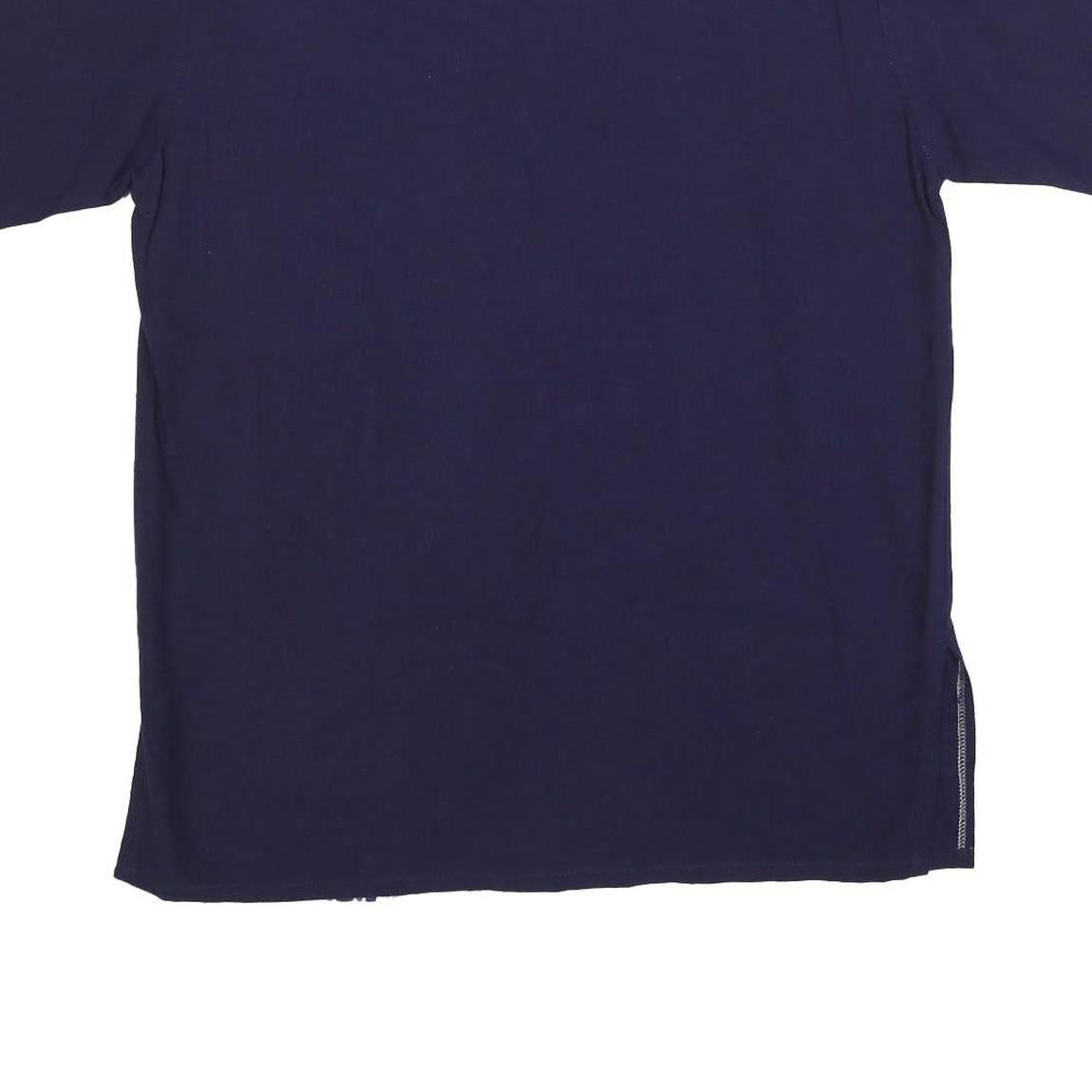 Mens Navy Blue & White Printed Cotton Blend Shirt M Short Sleeve Button Collar