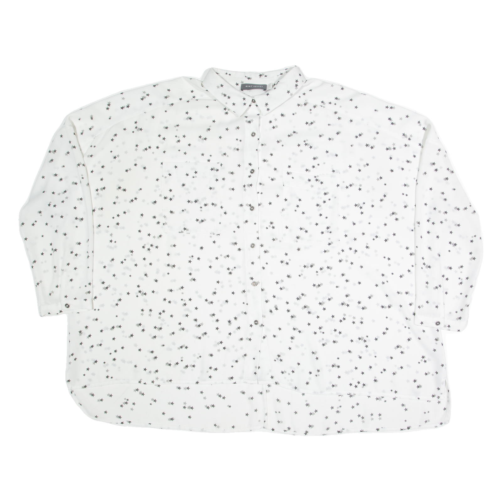 MINT VELVET Oversized Womens Shirt White Crazy Pattern 3/4 Sleeve M