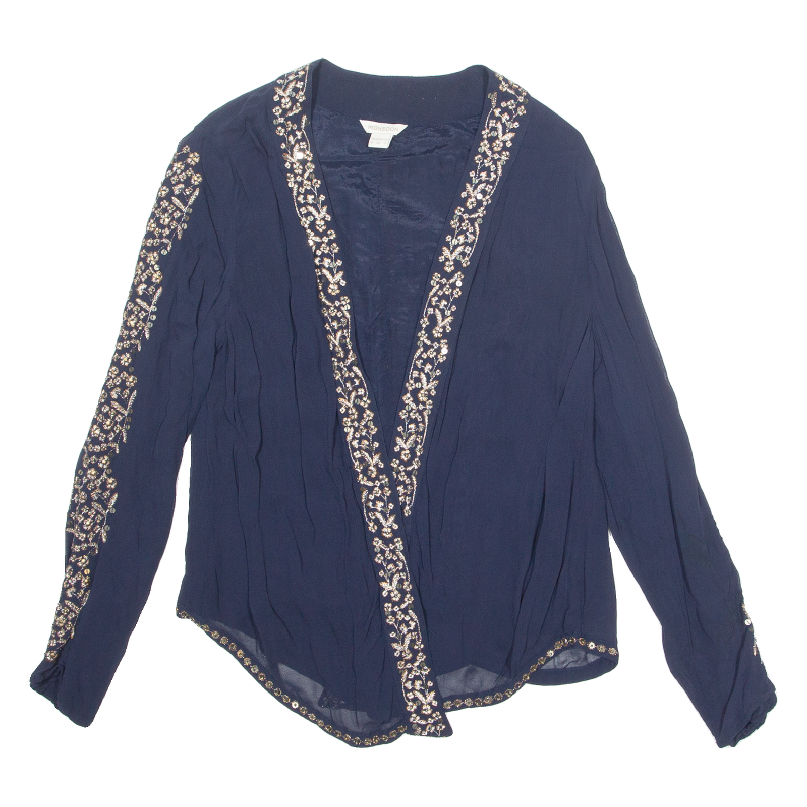 MONSOON Womens Printed Blouse Blue Long Sleeve UK 8