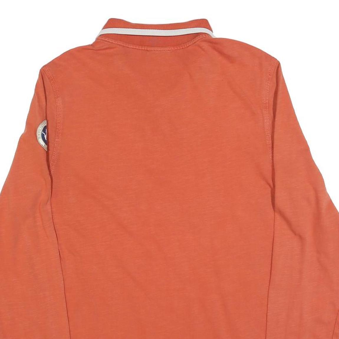 NAPAPIJRI Mens Orange Long Sleeve Plain Polo Shirt L Cotton Blend Casual