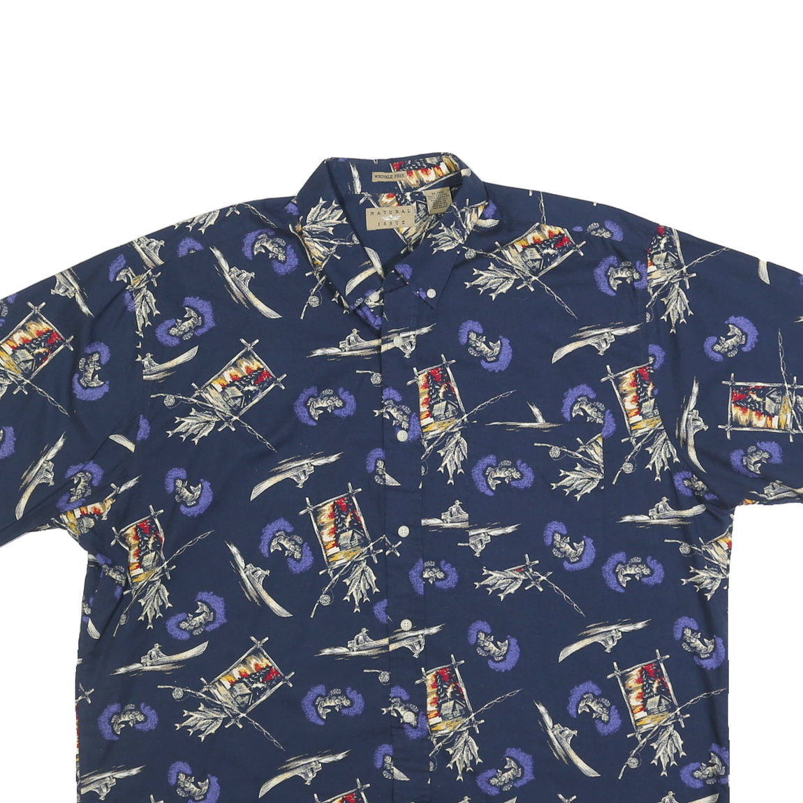 NATURAL ISSUE Mens Blue Pattern Shirt XL Cotton Button Sleeve Casual Short