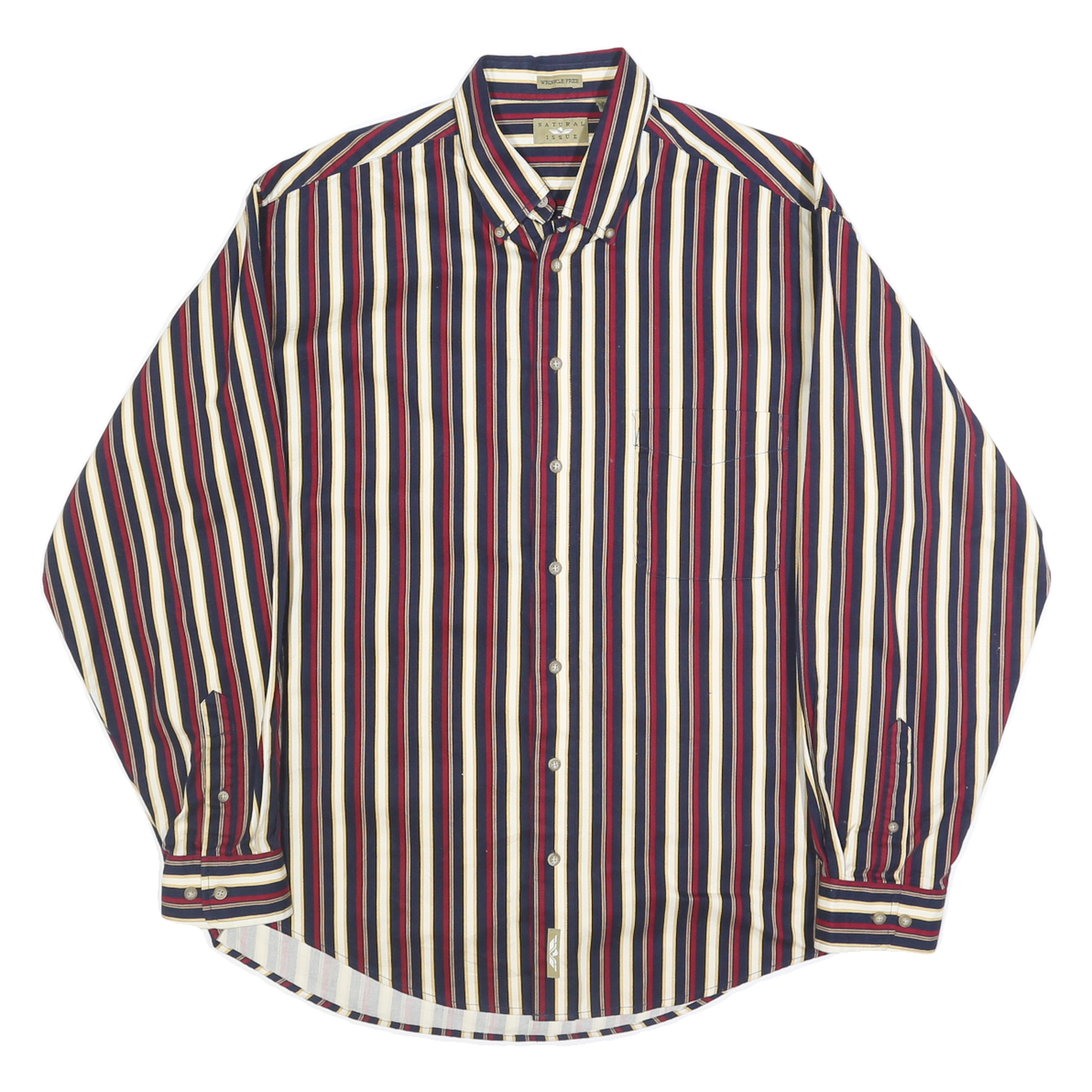 NATURAL ISSUE Mens Navy & Red Stripe Cotton Shirt XL Button Down Collar Long