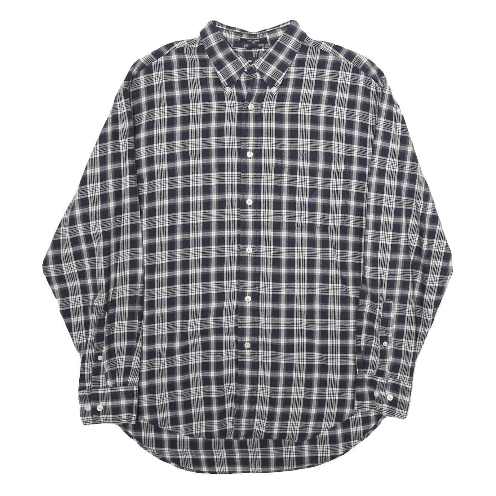 NAUTICA Mens Blue & White Check Shirt XL Cotton Long Sleeve Button-Down Casual