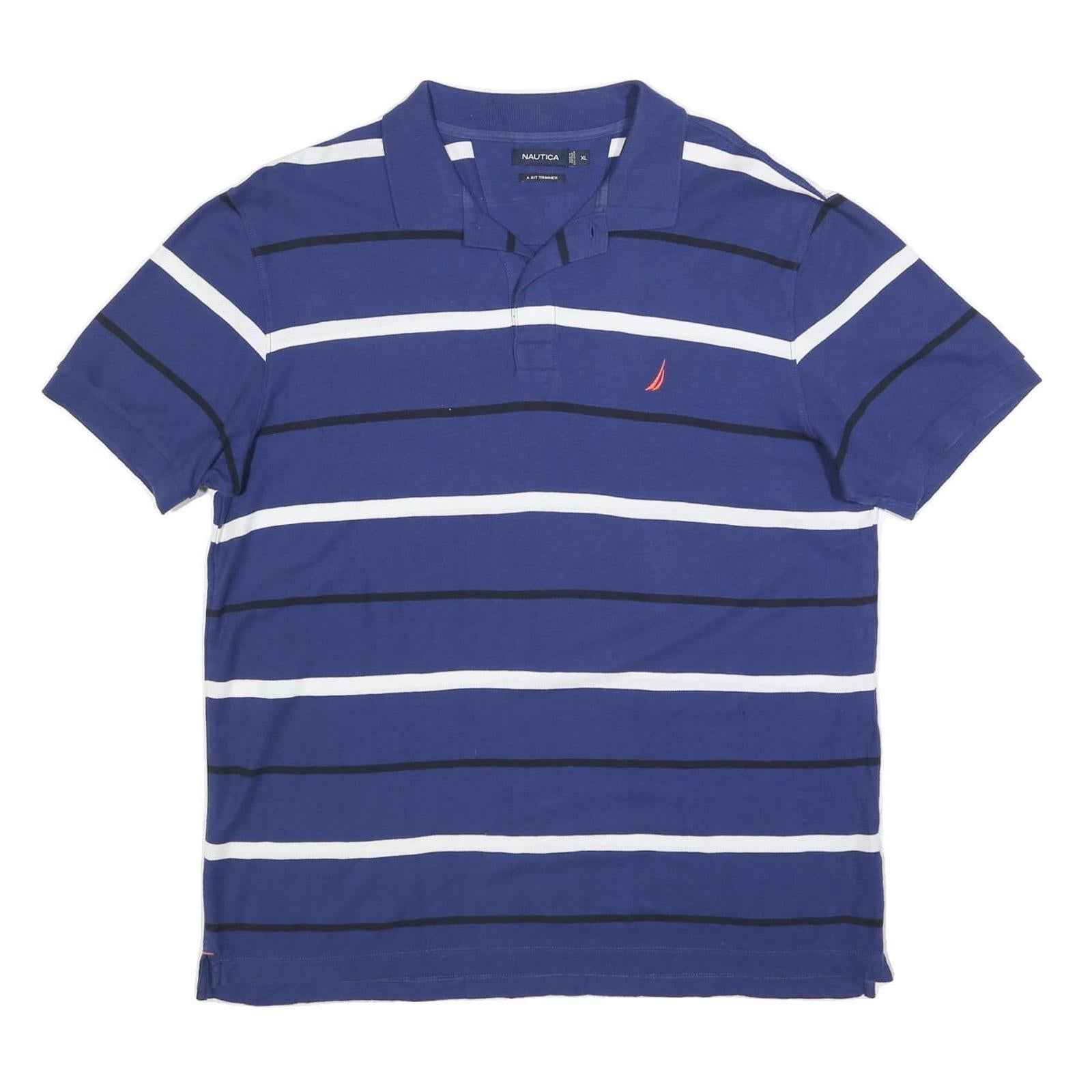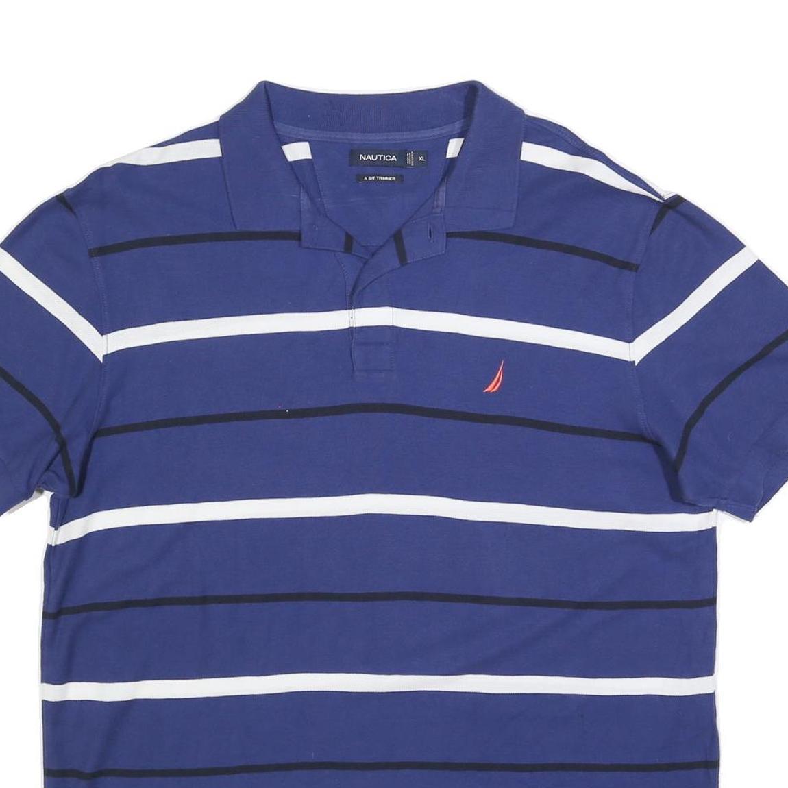 NAUTICA Mens Blue White Striped Short Sleeve Polo Shirt XL Cotton Blend Classic