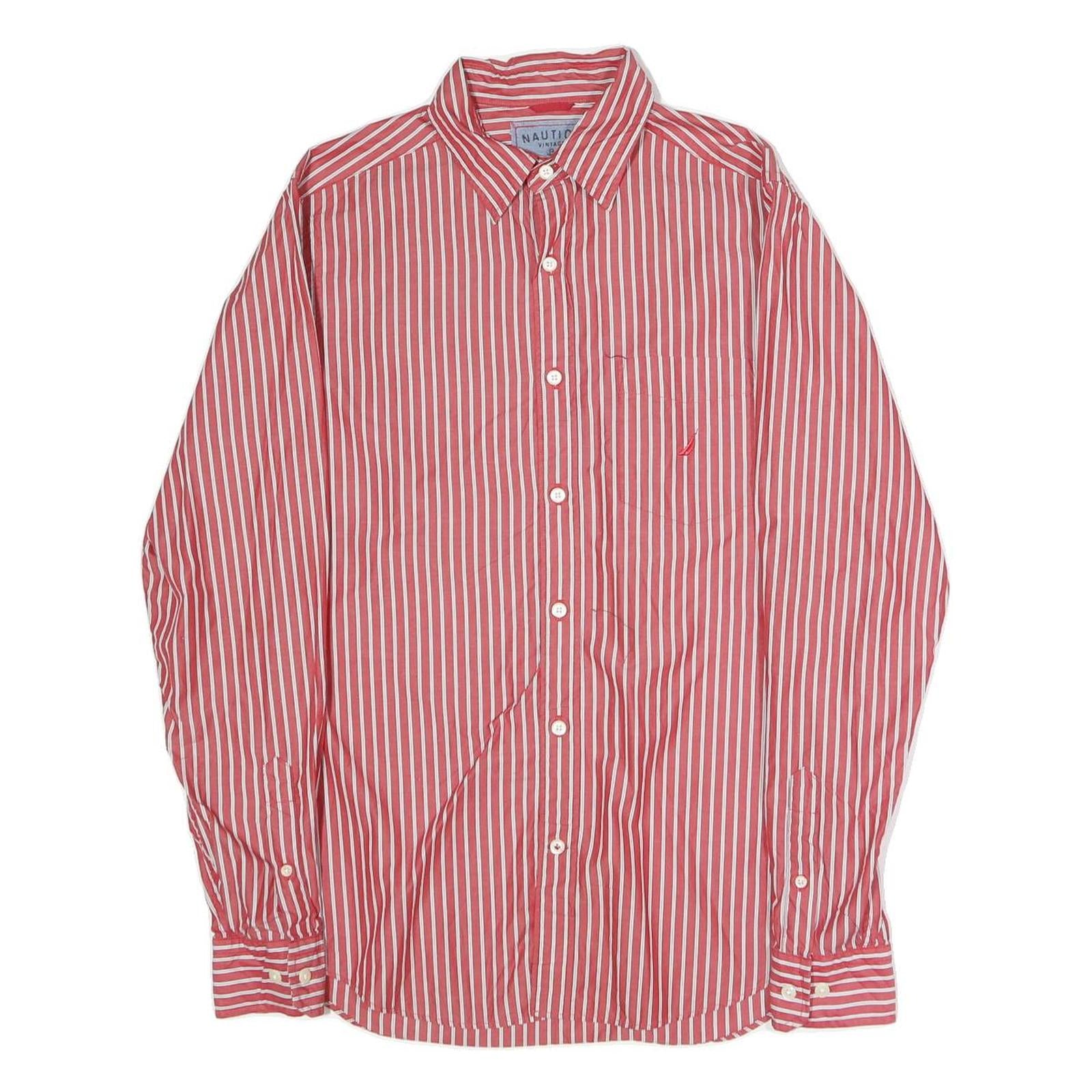 NAUTICA Mens Red & White Stripe Cotton Blend Shirt S Classic Fit Long Sleeve