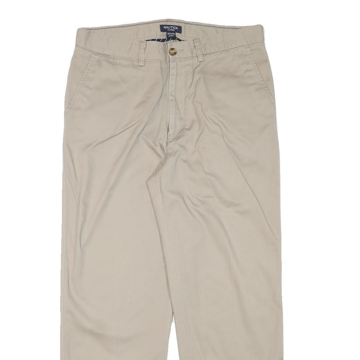 NAUTICA Mens Regular Fit Beige Cotton Blend Trousers W33 L28 Casual Zip Closure