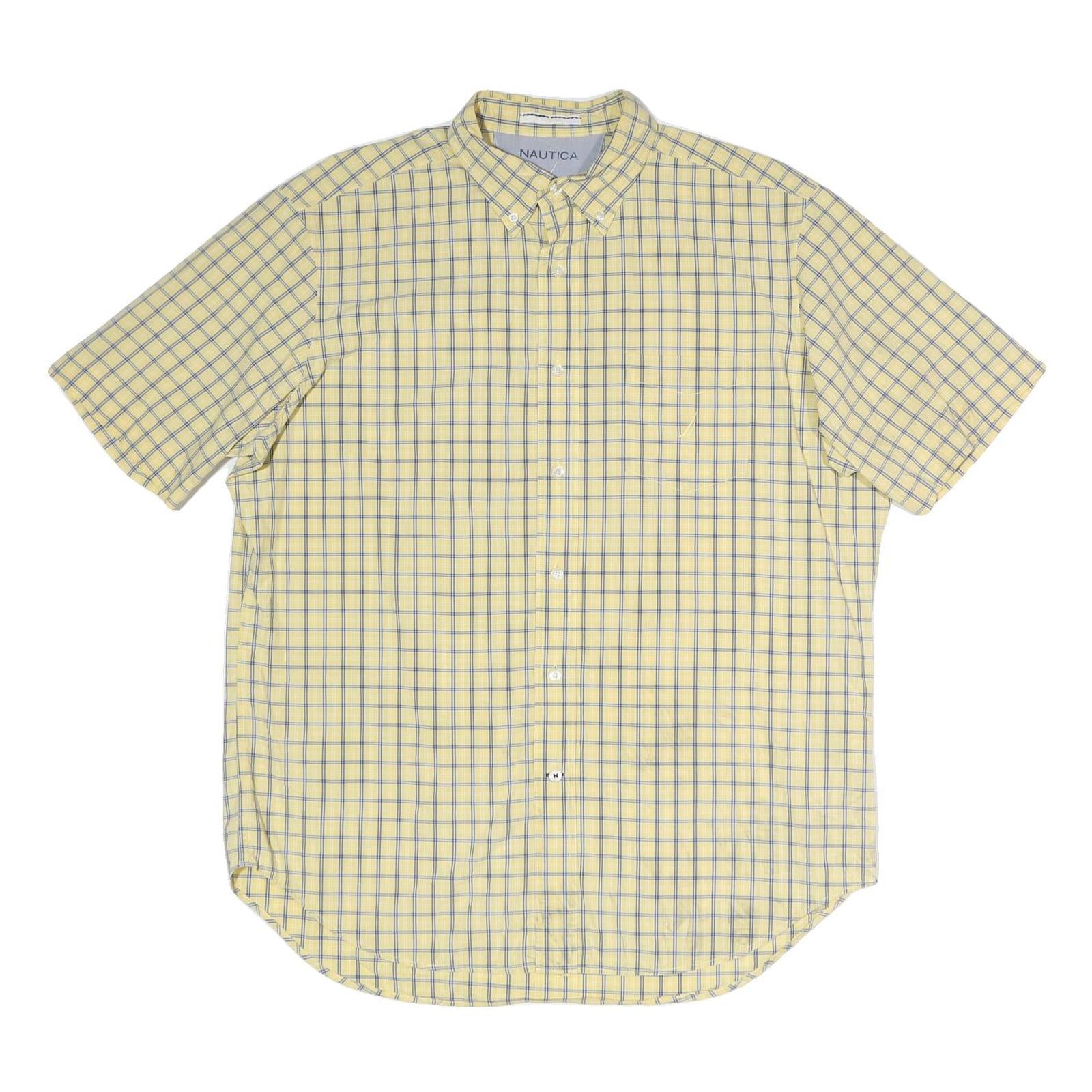 NAUTICA Mens Yellow & Blue Check Shirt L Button-Down Casual Cotton Blend