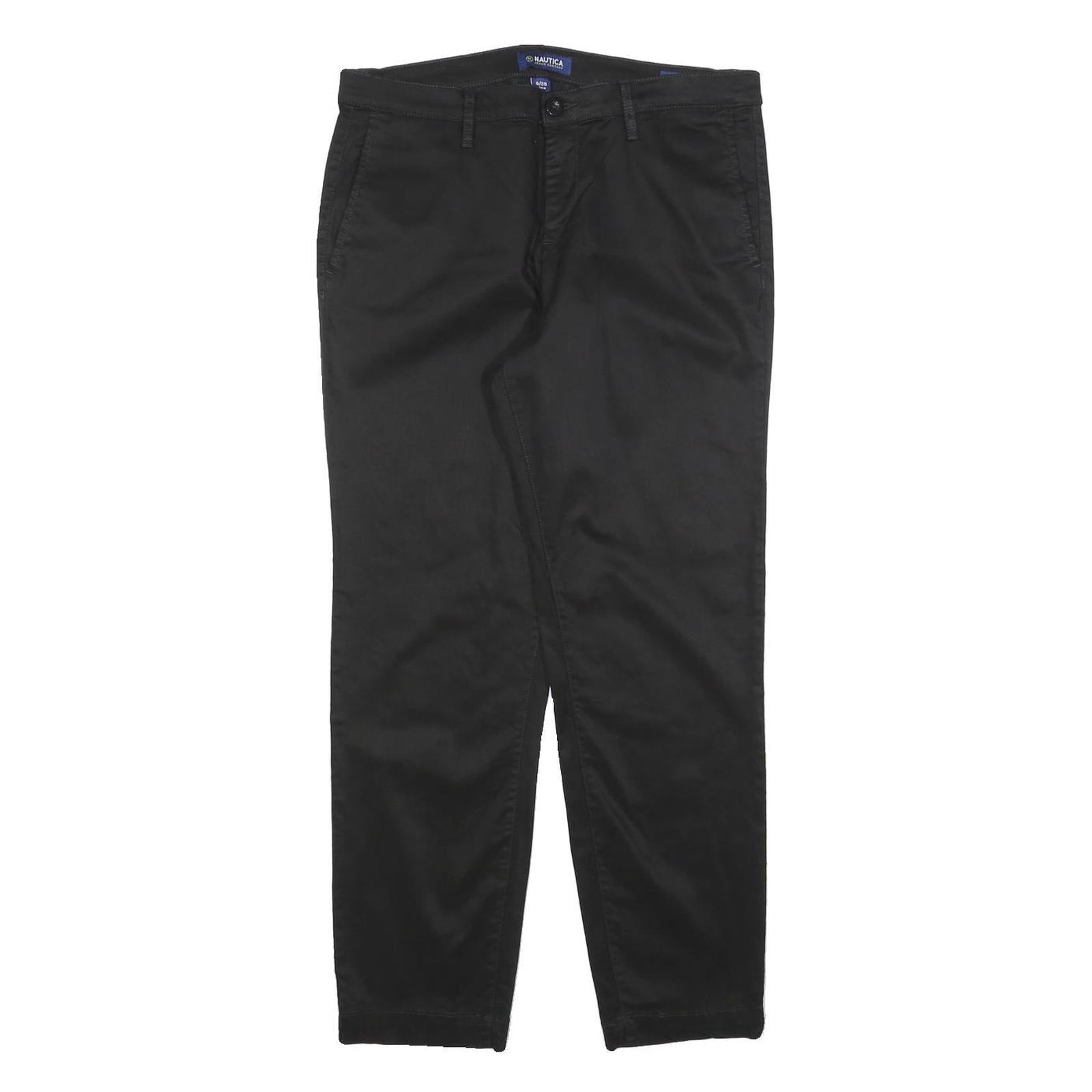 NAUTICA Womens Cotton Blend Black Regular Fit Straight Trousers W32 L28 Classic