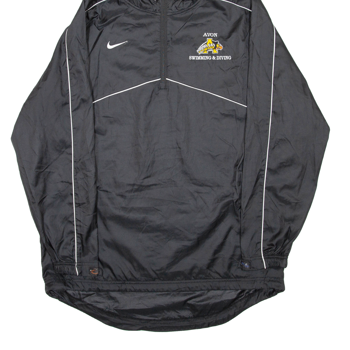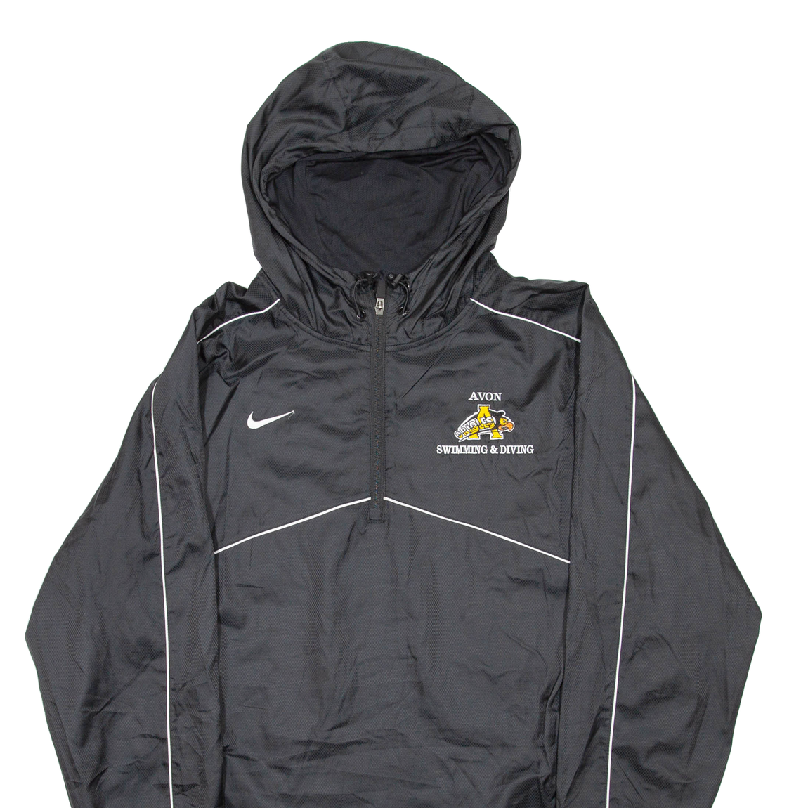 NIKE AVON Swimming And Diving PULLOVER Mens Windbreaker Jacket Black Hooded L