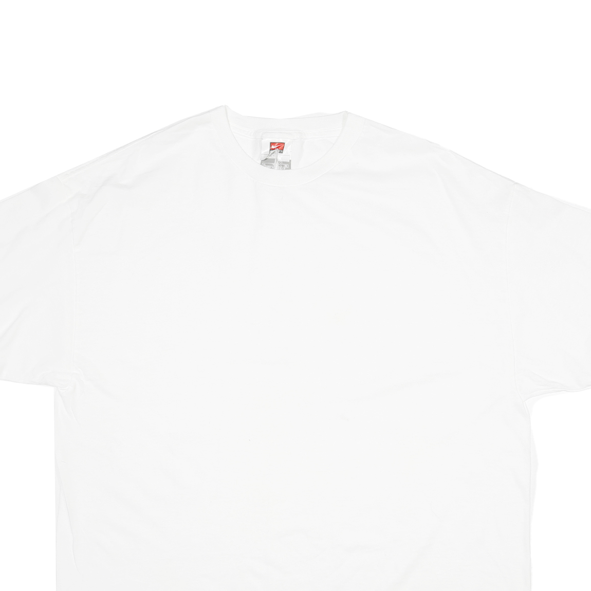 This Nike mens T-shirt is a classic white with a plain design, offering a clean and versatile look. It features a crew neck and short sleeves, making it ideal for everyday wear or sports activities. The label inside the neckline shows the Nike logo in red, confirming the authentic brand.
