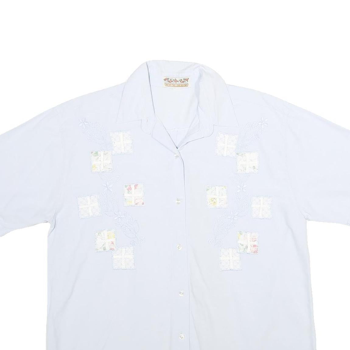 NOW HOW Womens White Cotton Shirt XL Embroidered Patchwork Button Front