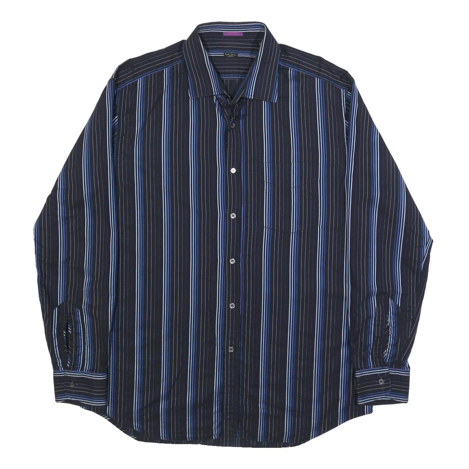 PAUL SMITH Mens Black & Blue Striped Cotton Shirt XL Button Long Sleeve
