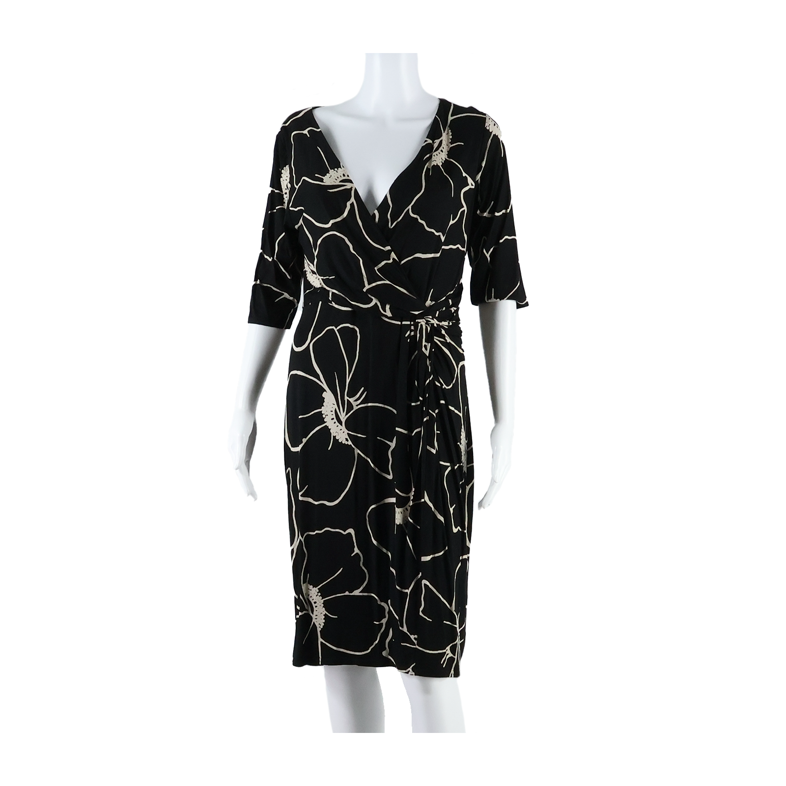 PHASE EIGHT Womens Bodycon Dress Black Floral Short Sleeve Midi UK 14