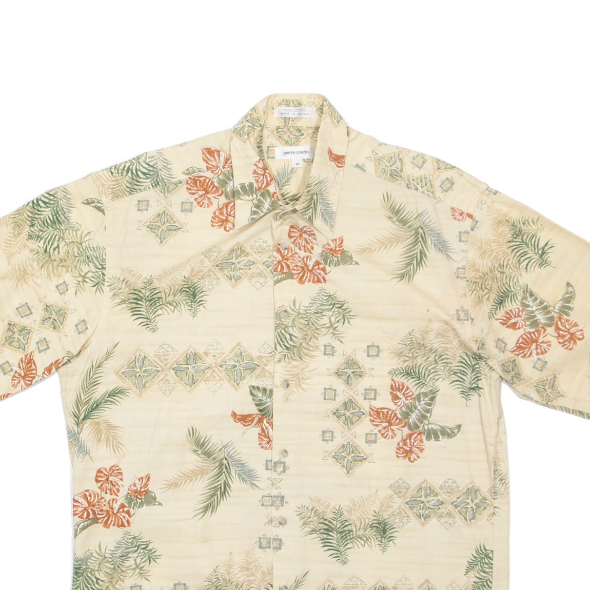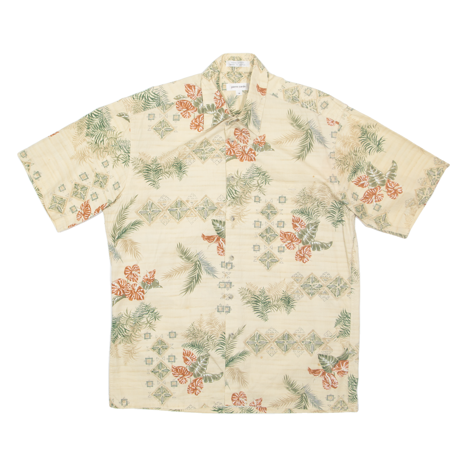 PIERRE CARDIN Mens Hawaiian Shirt Beige Floral M