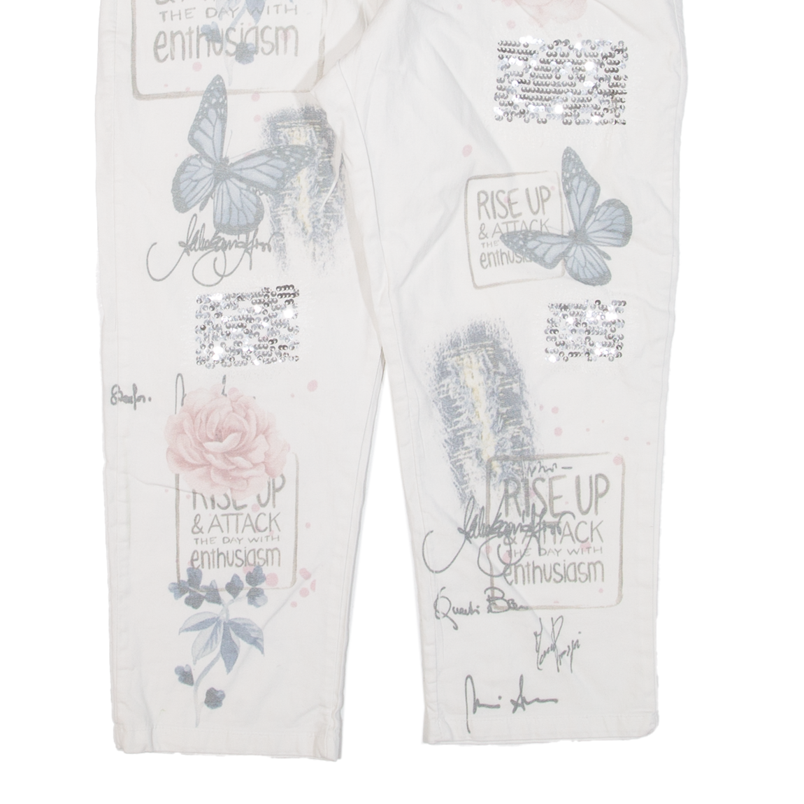 We understand that clothing sizes can vary depending on the brand, style, and age of the item. Therefore, along with providing the size stated in the label, we hand measure all our items to give you the exact measurements. Unless stated otherwise all measurements are taken with the item un-stretched.