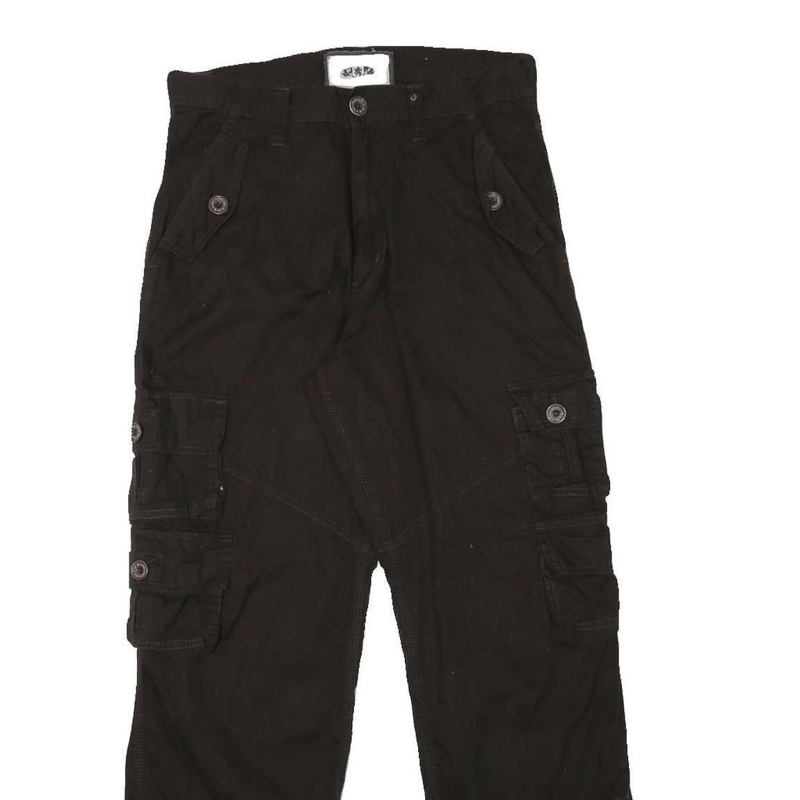 PJ Mens Black Cotton Blend Regular Fit Cargo Trousers W30 L29 Zip Closure