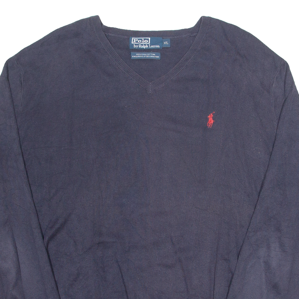 POLO RALPH LAUREN Mens Jumper Blue V-Neck Tight Knit XL