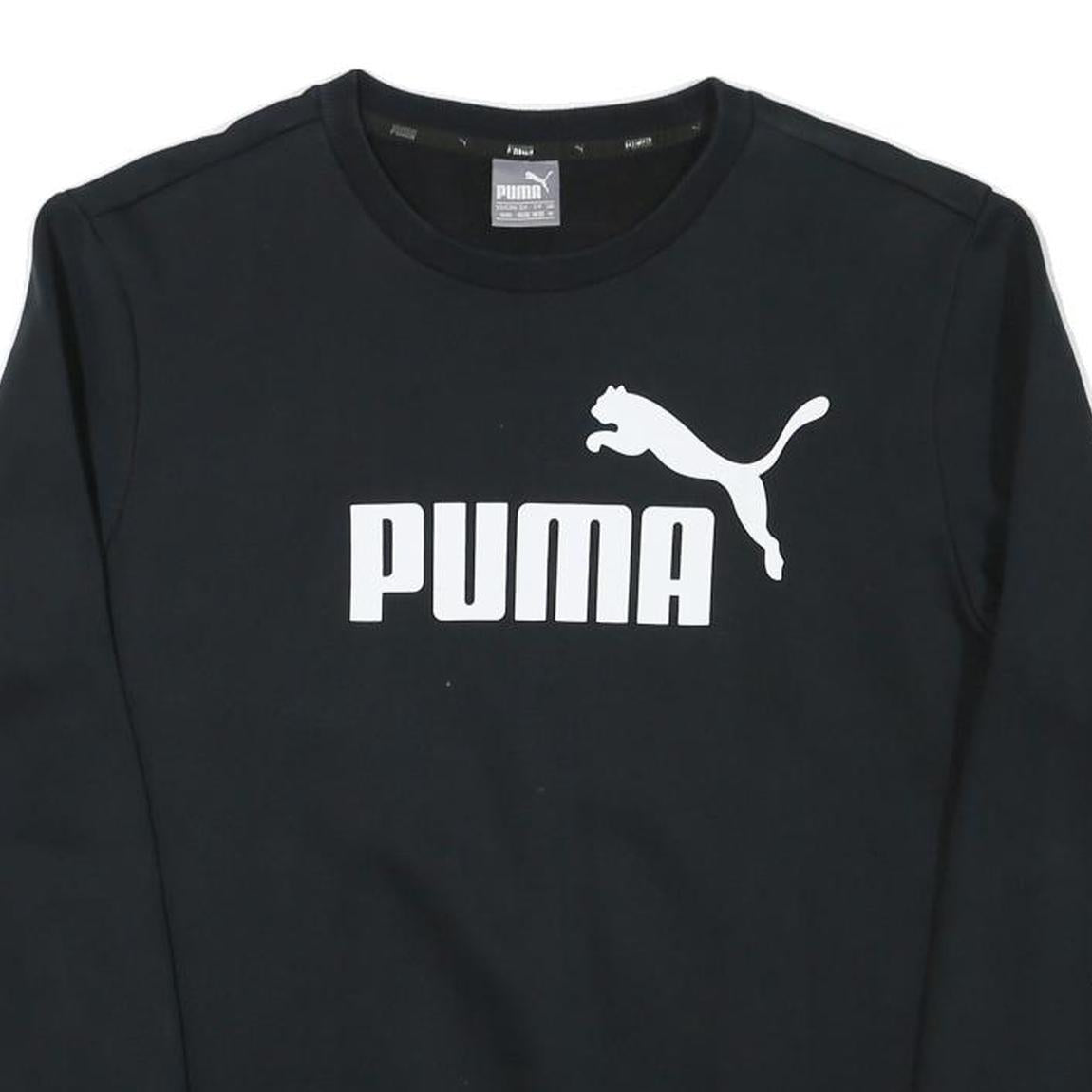 PUMA Mens Black Cotton Blend Crew Neck Sweatshirt M Logo Print Casual