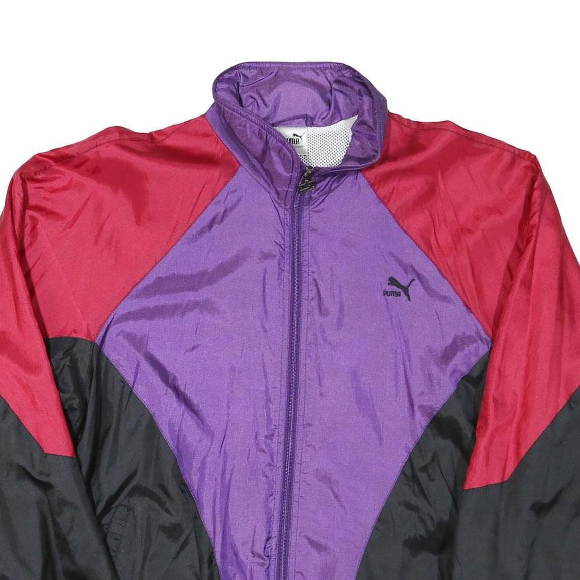 PUMA Womens Purple & Red & Black Jacket L Polyester Blend Colourblock Zip Long