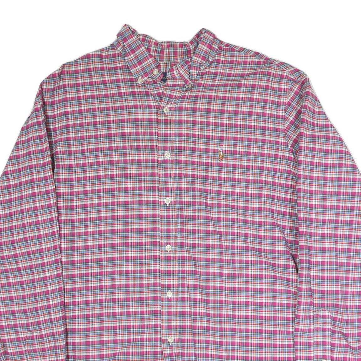 RALPH LAUREN Mens Pink & Blue Check Shirt XL Cotton Blend Button Down Collar