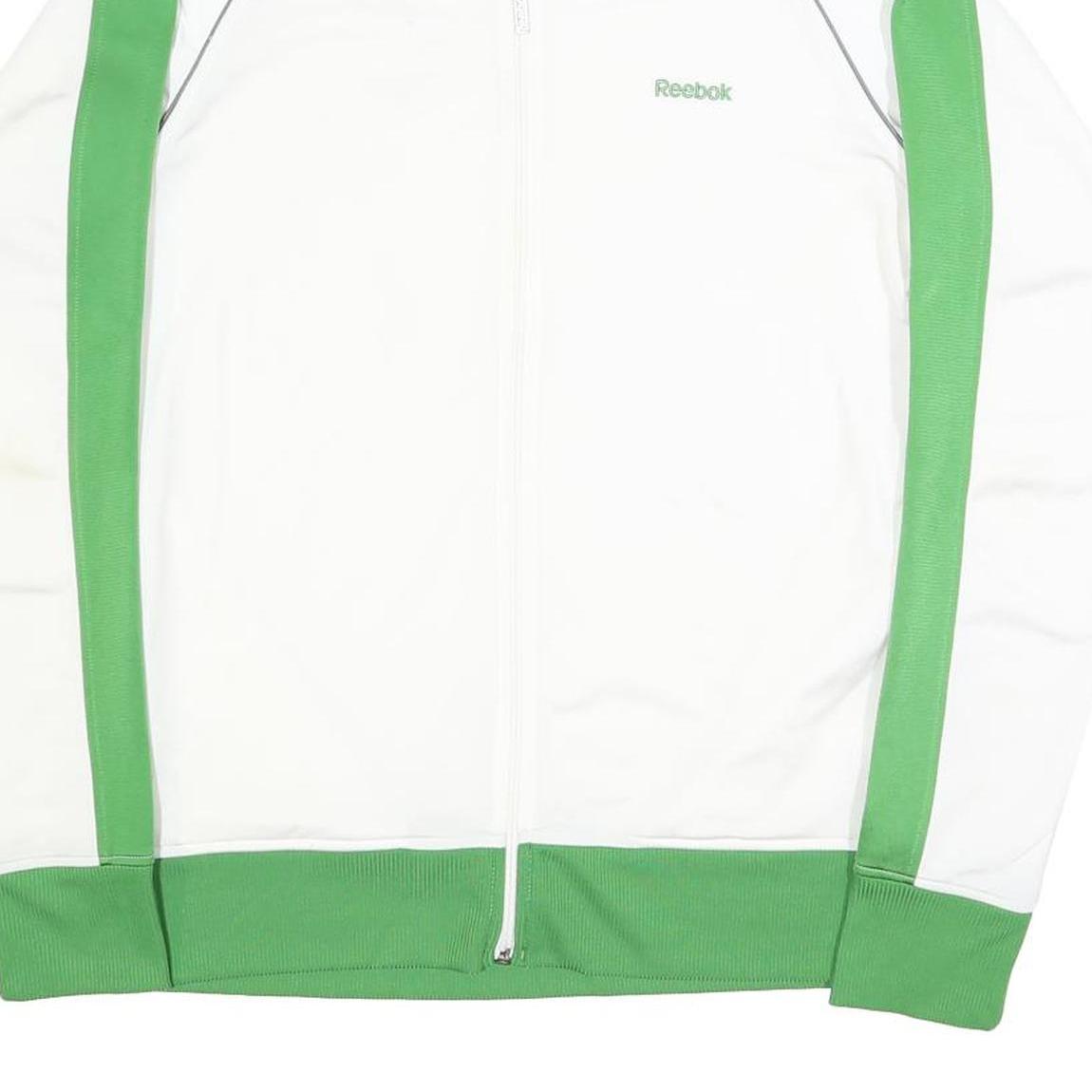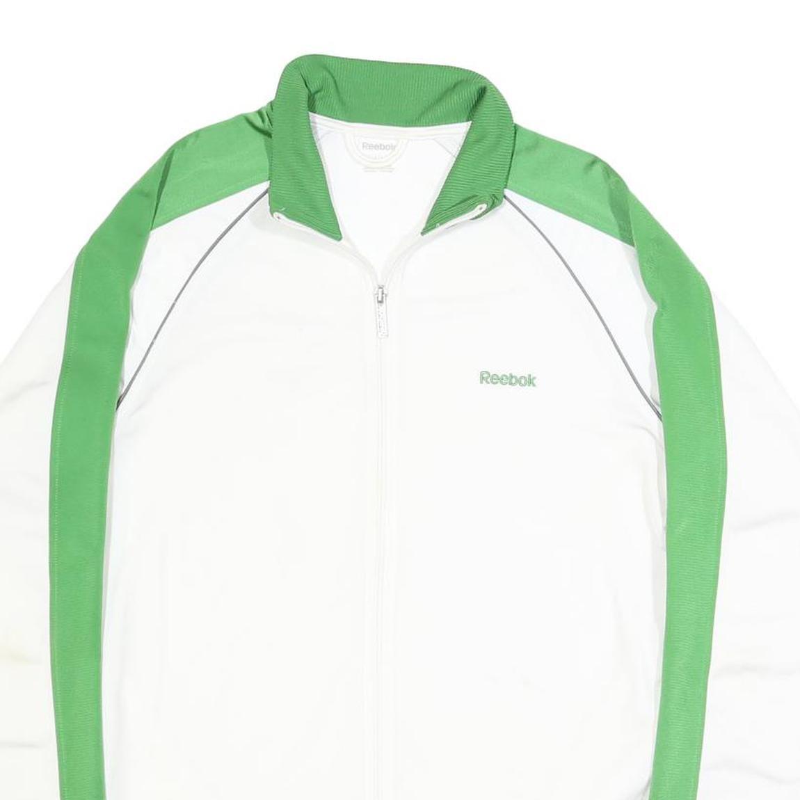 REEBOK Mens White & Green Track Jacket M Polyester Zip Casual Sportswear