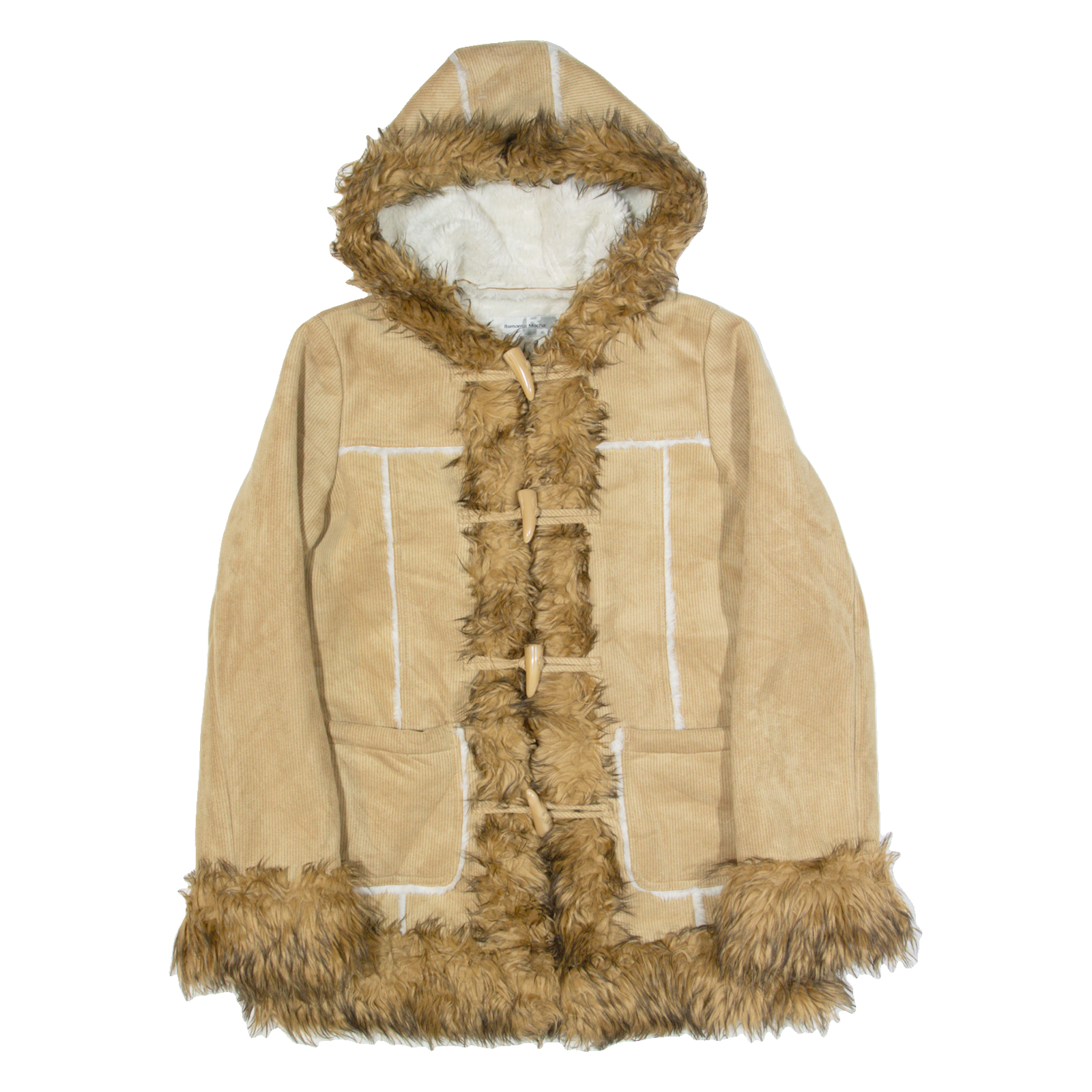 ROMANTIC MOCHA Sherpa Lined Womens Duffle Coat Brown Hooded M