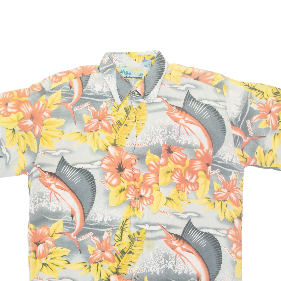 ROUNDY BAY Mens Hawaiian Shirt Grey Floral L