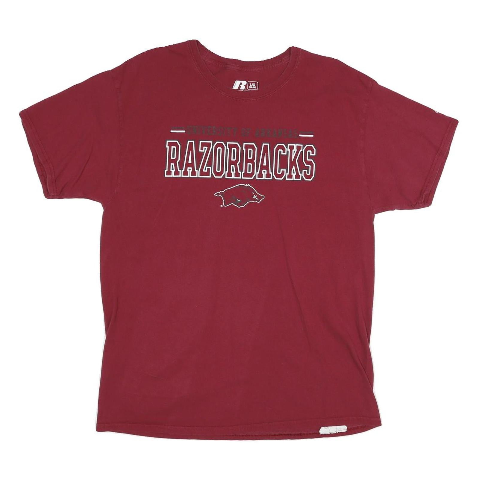 RUSSELL ATHLETIC Mens Maroon University Of Arkansas Razorbacks Graphic T-Shirt L