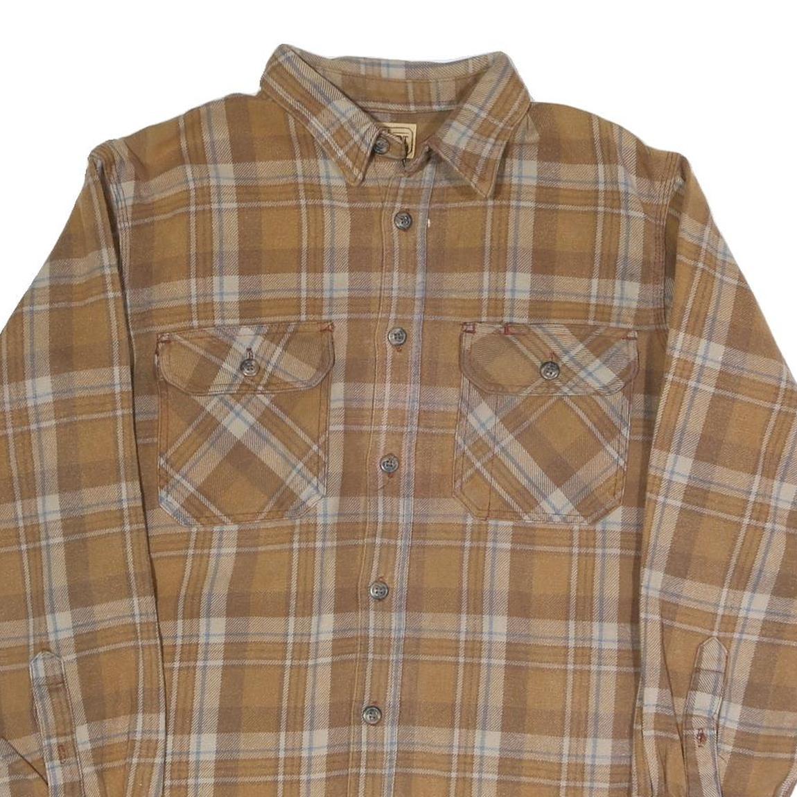 SCHMIDT Mens Beige & Cream Check Shirt M Cotton Blend Casual Button Detail